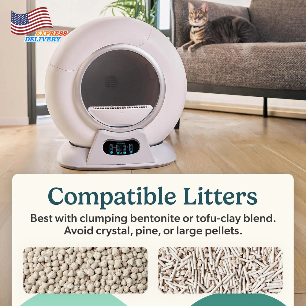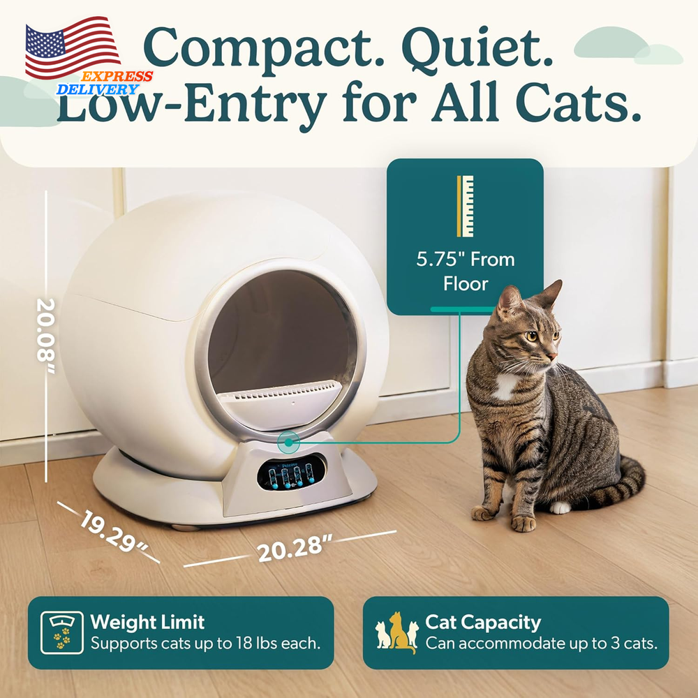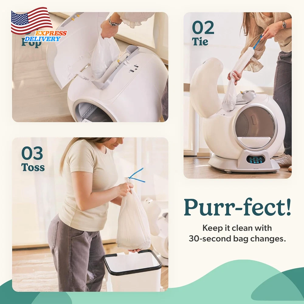 Store New Arrivals Add to Favorite View Feedback Contact Self Cleaning Automatic Litter Box for Multi Cat XL Capacity Quiet Operation Description Item model number PC-PRRTK-GRY Age Range Description All Life Stages Warranty Description LIFETIME WARRANTY Number of Items 1 Item Dimensions LxWxH 20.08 x 18.9 x 19.72 inches Color White 3 Product Dimensions 20.08"L x 18.9"W x 19.72"H Material Plastic Style Modern Item Weight 16 Pounds With Lid Yes Target Audience Keyword Cats, house-cats Model Name PurrTek Directions Read Instructions Manual before use Included Components 25 LitterWrap Liners, Base unit with litter drum, Insert Cards, Power adapter and cord, User manual Size Large Specific Uses for Product Indoor Item Package Dimensions L x W x H 23 x 23 x 22 inches 【Self Cleaning Litter Box】 Say goodbye to daily scooping. PurrTek auto litter box sifts into a sealed bag after every visit. Just tie and toss for a box that stays clean, fresh, and ready—24/7 convenience for you and comfort for your cat 【Triple Odor Control Self Cleaning Cat Litter Box】 Stop litter odors before they spread. PurrTek combines a sealed bin, deodorizing fan, and negative-ion system to neutralize smells instantly—keeping your home fresh, even with multiple cats 【Smart App Connectivity】Take the guesswork out of litter care. Connect via 2.4/5 GHz Wi-Fi or Bluetooth and control PurrTek through the Petcove app—schedule cleanings, adjust settings, monitor cat visits and get alerts when the bin is full 【Designed for Comfort】 Spacious, open drum with smooth low-RPM rotation lets cats turn, dig, and exit naturally. Built for cats up to 18 lb; Auto-cleaning pauses for kittens under 3 lb or pregnant/nursing cats, ensuring gentle, worry-free use 【Built for Busy Homes】 One litter box handles it all. The large sealed bin stores up to 15 days of waste for one cat or 5 days for three—so you enjoy hands-free convenience, fewer cleanups, and more time for what matters 【Quick Cleaning, Easy Care】 The filter and litter cylinder remove in seconds for wiping or washing with mild soap. The electronics stay dry, so cleanup is quick and the unit stays fresh 【Advanced Safety Features】 Anti-Pinch safety sensors stop the drum instantly if your cat approaches. Four weight sensors and an infrared sensor add layers of protection, while the child-lock and safe-entry mode keep both pets and kids safe during use 【Litter Compatibility】PurrTek self cleaning litter box for multiple cats works best for smooth sifting with clumping bentonite or mixed tofu/clay. Avoid crystal, pine, non‑clumping, dusty or oversized pellets that may clog or stick in the filter 【Space-Saving Dimensions】 Compact 20.28″ × 19.29″ × 20.08″ cat litter box automatic cleaning design with a stable, sensor-based base that prevents tipping. Fits neatly into any corner or room, blending seamlessly into your home 【Trusted Quality & Support】Backed by Petcove, a US-based company. We stand behind PurrTek electric cat litter box self cleaning with lifetime coverage and dedicated customer support——delivering confidence, care, and lasting value with every purchase. Product description ABOUT US We offer the best prices around on high quality products. Our E-store includes media such as books, movies, music and games while offering electronics, toys, sporting apparel, clothing, tools, general home, garden items and more. SHIPPING We are always working hard to ensure your package arrives as soon as possible. Please understand that some factors like weather, high postal traffic, and the performance of shipping companies are outside of our control. We offer free shipping to the lower 48 states and ship within 2 business days of payment, usually sooner. We do not accept P.O. Boxes. Please provide a physical address. For shipping outside of the continental USA, we only use eBay's Global Shipping Program.The item is shipped to KY and then sent to the rest of the world. International customers are responsible for all duties and taxes. Continue to check out in order to calculate costs for shipping the item to your country. Messages regarding eBay's Global Shipping Program MUST be directed at eBay EXCLUSIVELY. RETURNS We offer a 30-Day Return Policy on items which you are not completely satisfied with. You have the option for a full-refund or an exchange of the item. No returns are available on items shipped outside of the USA. PAYMENT We accept PayPal. CONTACT US This page content is yet to come Please ad us to your favorite seller and visit again later Thank You CUSTOMER SATISFACTION We try our very best to make sure every customer is completely satisfied. If there's a problem, message us! We're happy to help. WE ACCEPT Copyright © 2021 AutoDS. | All Rights Reserved