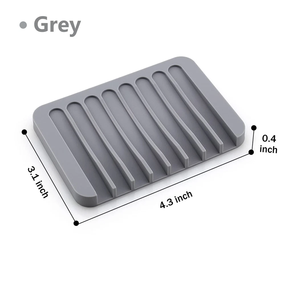 【SOFT & PRACTICAL】Soap dish is made of high quality flexible silicone, easy to clean, beautiful, and very practical. 【ANTI-SLIP, NO WATER ACCUMULATION】Soap savers are designed with grooves to prevent soap from falling down. Self-draining levels allow water to flow out, Keep soap dry quickly, so that it prevents soap melting and extend soap life. 【WIDELY USED】These soap trays mainly used at home for shower, bath tub, kitchen sponges, cleaning ball, shaver, shampoo, shower gel, hair Clips, earrings, and other small items. They work great in the shower/ bathtub/ kitchen/ countertop and more. 【BUY WITH CONFIDENCE】The soap rack is made of high-quality environmental protection silica gel. soft and it almost no smell, adults and children can use it safely, You will never worry that it will break or hurt other items. 【WHAT YOU GET】You will get 3 pieces soap holder totally in one package, enough quantity for your own use and share them with your families, friends.
