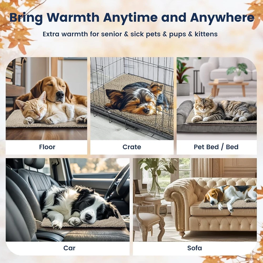 Created with Eselt - eBay Listing Designs Send us a message Created with Eselt - eBay Listing Designs Our Store Seller Profile Feedback About us Contact Created with Eselt - eBay Listing Designs Self Heating Dog Mat, 36 X 24 Inch Self Warming Dog Bed for Indoor Outdoor, Non About this item MULTIPLE SIZES: We offer five size options - 24*18*1, 30*20*1, 36*24*1, 42*28*1, and 48*28*1. Suitable for pets weighing from 30 to 110 pounds. There is a perfect fit for every furry friend, whether it's a small kitten or a large puppy. SELF HEATING: No electricity needed! Our self heating dog bed works by absorbing and reflecting your pet's body heat, creating a warm and cozy haven. This natural heating process keeps your furry companion snug and comfortable even on the coldest days. DESIGNED FOR DURABILITY: Made with high-quality & comfortable sherpa material and equipped with a non-slip bottom. Built to last, our pet warming mat can endure the wear and tear of daily use. Non-slip for safety for your furry friend. MULTI USE & PORTABLE: Comes with a removable washable cover for effortless cleaning. The lightweight design makes it easy to move around. Whether it can be uesd as a pet crate heating pad, kennel warming mat in the room, or even outdoors on a sunny day. AFTER SALES SERVICE: If not satisfied with the self heated pet pad, contact us. We'll solve issues. Shake and pat after receiving from sealed package. Cover is machine washable. Wash cover before use for comfort. Committed to your satisfaction. Created with Eselt - eBay Listing Designs Created with Eselt - eBay Listing Designs