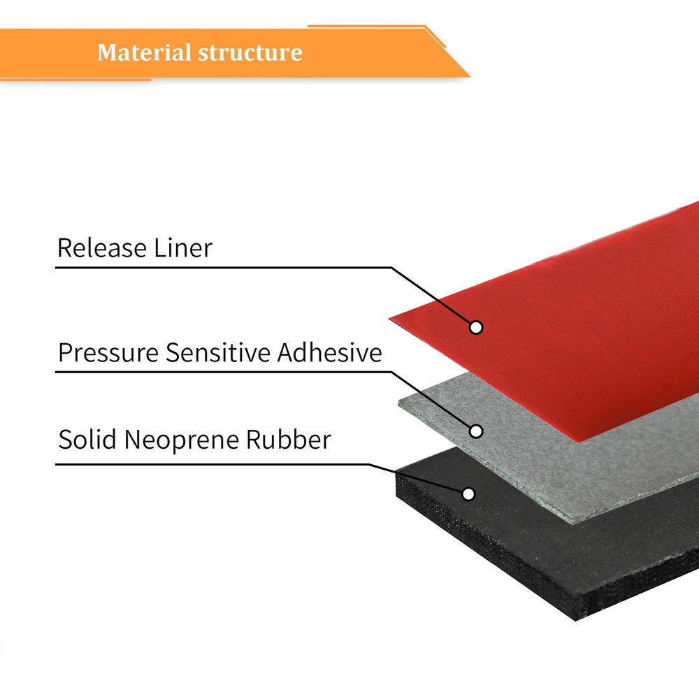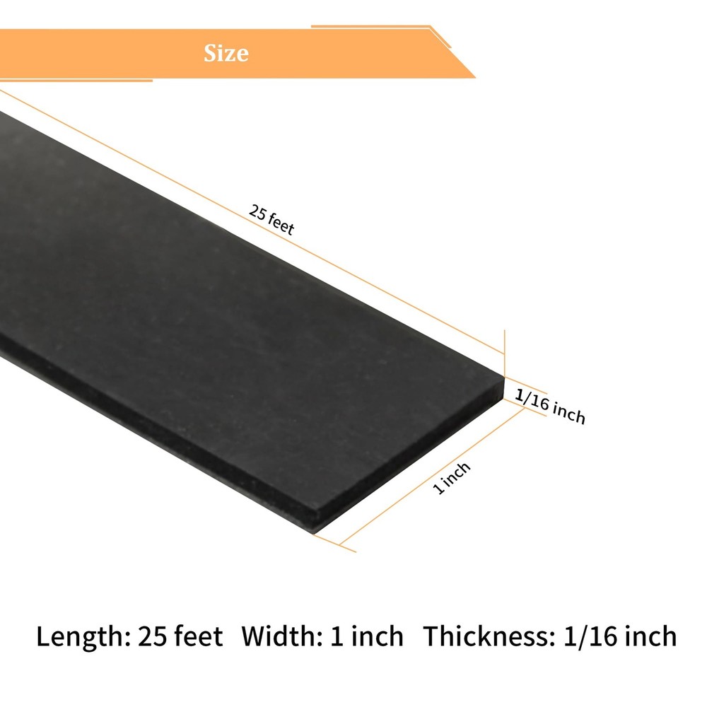 Solid Neoprene Rubber Strips with Adhesive Backing HIGH QUALITY RUBBER MATERIAL-The Adhesive Rubber Strips are made of high quality neoprene rubber raw materials, tear-resistant and long-lasting,it is not sponge or foam. VERSATILE USE- neoprene rubber strips with adhesive backing for multiple purposes, rubber sheet for DIY gaskets, pads, seals, crafts, flooring, cushioning of anti-vibration, anti-slip.It is applications include belting, sound-proofing. with long lasting and resistant to abrasion and oils. can be used to seal, and even protect your floors with its cushioning properties. EASY TO CUT- Heavy duty self adhesive rubber strips easy to cut it to the length of what you need,to trim to any shape to reduce vibrations, cushion and insulate plumbing and to create a barrier and seal them. DURABLE AND FLEXIBLE-The Adhesive rubber gasket material is very easy to work.Neoprene one of the first oil resistant synthetic rubbers.The rubber seal solid strip is exceptional durability.It remains firm and flexible in a wide range of temperatures and conditions, suitable for wide use. WHAT YOU GET- You will get solid neoprene rubber sheets by 1/16 (.062)" Thick x 1" Wide X 25' Long, and you are protected with our 100% for a .Please if you have any questions.