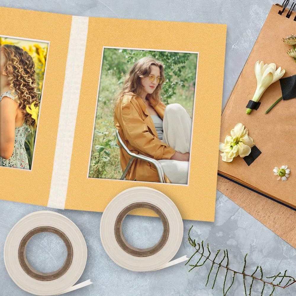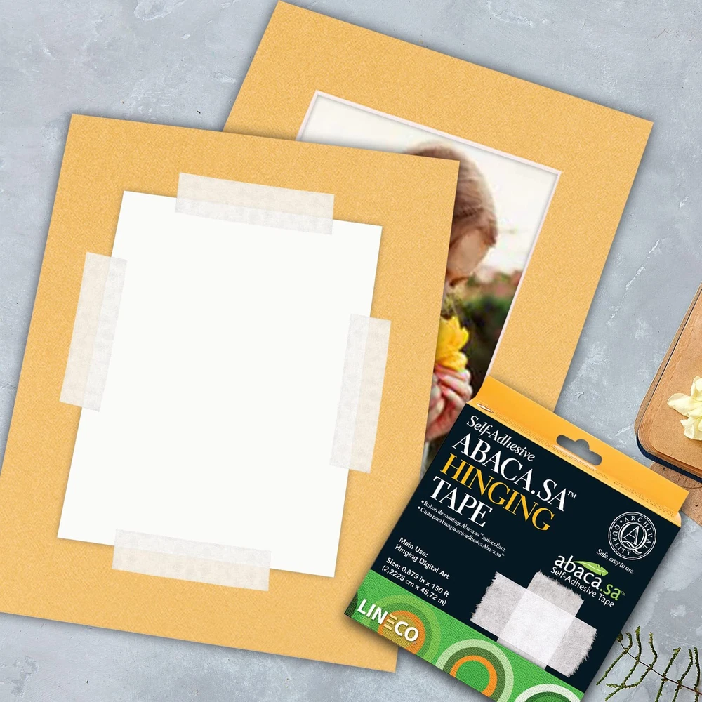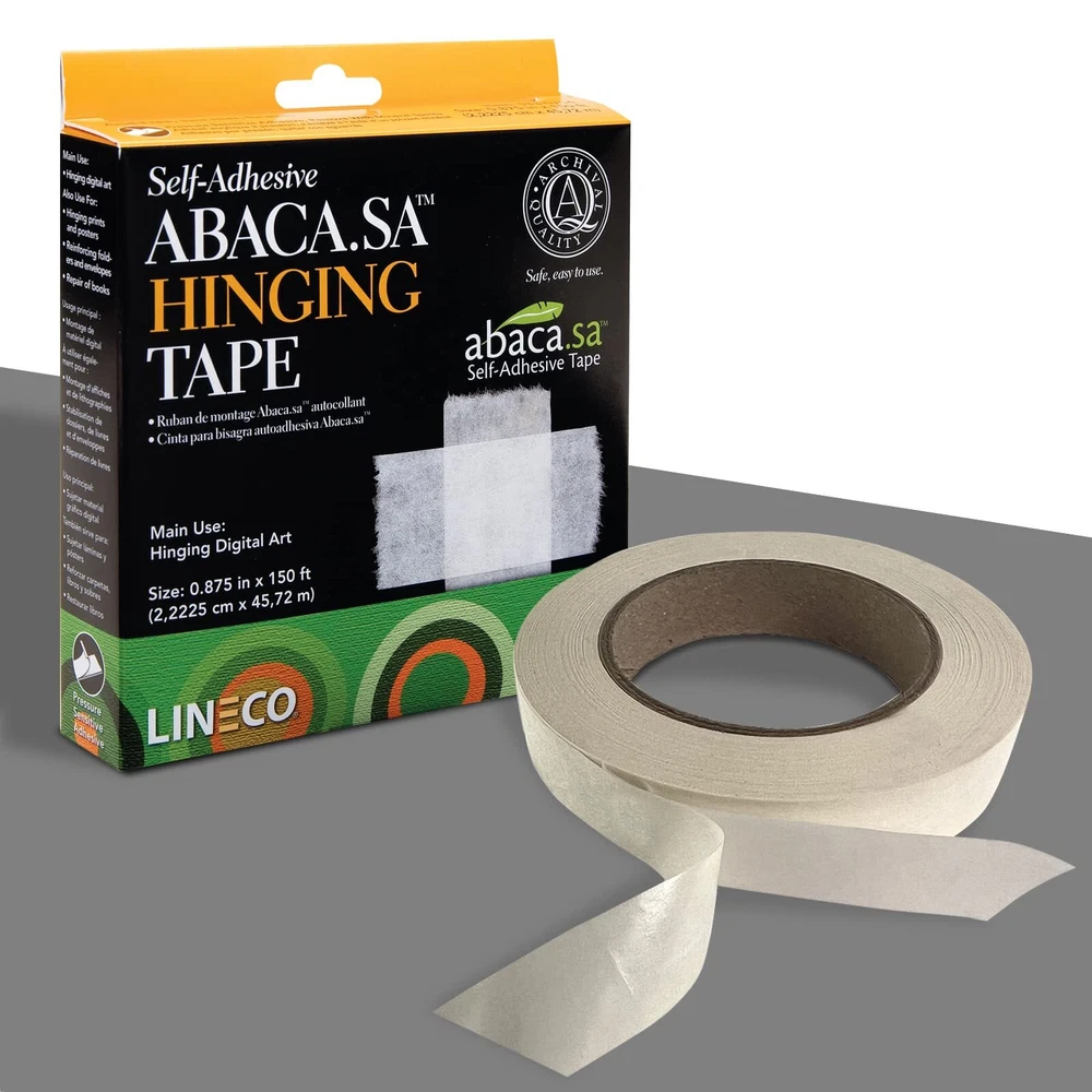Made with Natural Materials: Abaca.sa self-hinging tape incorporates the strength and supple nature of Abaca paper (manila hemp) Made of: Abaca paper is acid-free, biodegradable, and comes from a self-sustaining plant, it is a very strong acrylic adhesive that is permanent and non-yellowing Sturdy: Abaca.sa is strong enough to hold large digital prints, and supple enough to adhere to the print without distorting Good Alternative: Gummed tapes are risky to use with Giclee inkjet prints because of their water sensitivity. In these cases a self-adhesive tape is better alternative Size: 0.875'' x 150 ft, Pack of 2, perfect for Digital Prints, Picture Frame