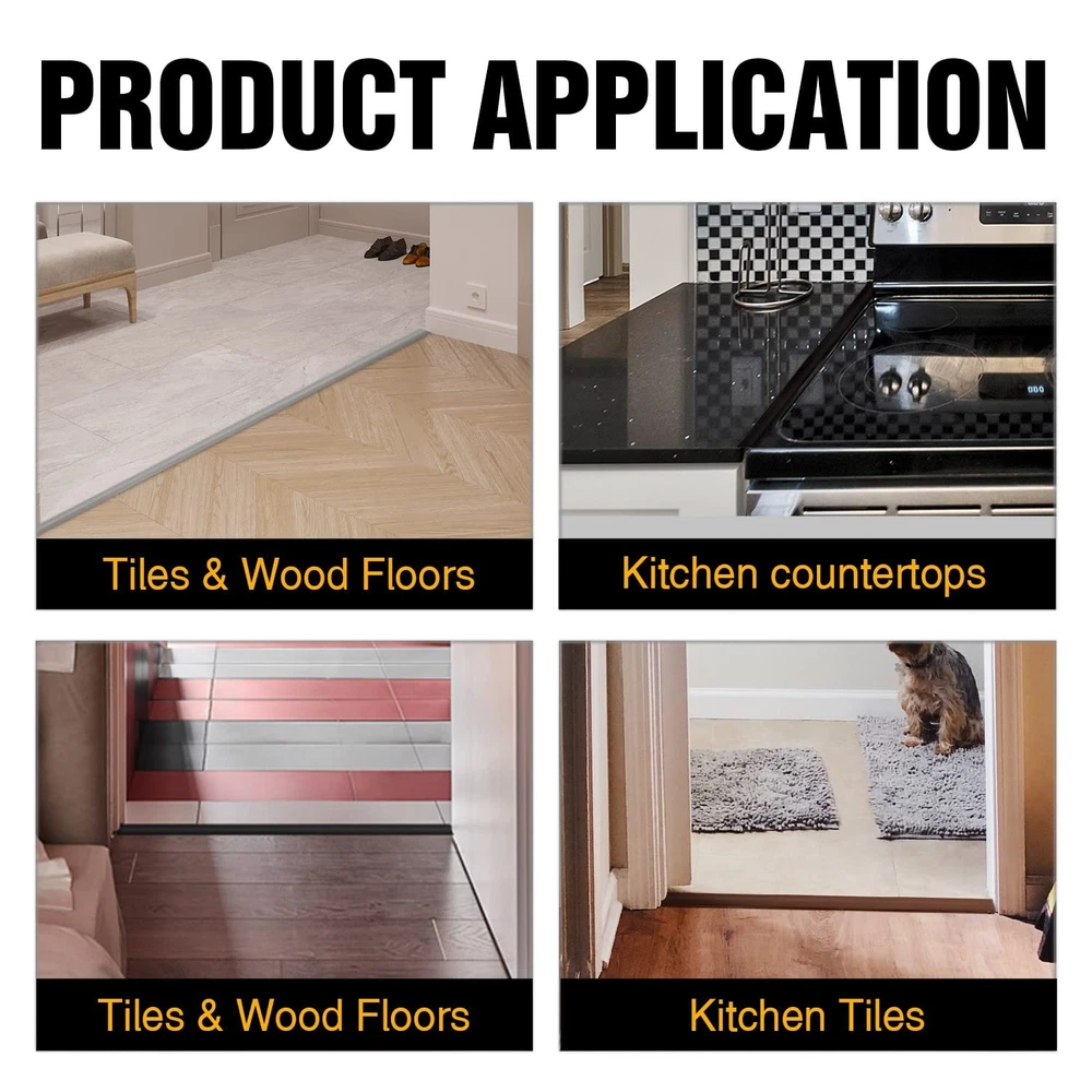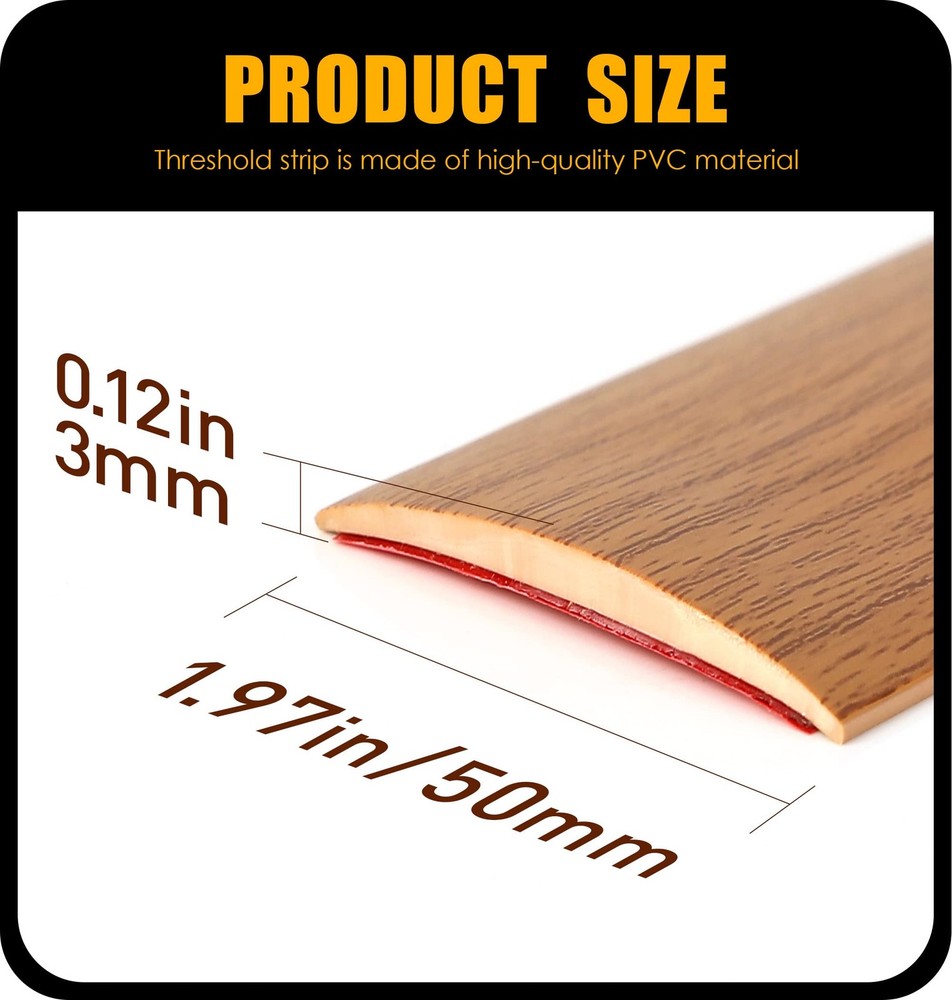 The width of regular color floor transition strips are all 1.57in The width of wood grain floor transition strips are all 2in The regular color floor transition strips are suitable for tile and vinyl floor and threshold and other areas where gaps need to be covered,but the wood grain color floor transition strips are more suitable for wood-grain floors. Self Adhesive Floor Transition Strip Floor covering strips beautifully bridges a seam or gap between floors of equal heights. Beneficial to protect children or the elderly, and is not easy to trip. ✅Product Material:floor transition strip is made of high quality PVC material, durable and flexible,it has the characteristics of good anti-aging, flame retardant, dirt resistance and environmental protection. ✅Product Usage: The laminate floor joining strip make it easy to cover gaps,especially the gaps between the tiles, also widely used as divider strip of transition area between living room and kitchen. ✅Installation Method:The kind of vinyl transition floor edge trim with peel and stick design and strong self-adhesive feature , just peel and stick, cut with scissors. Please Make sure the floor is clean, flat and dry before installation, and do not install on uneven surfaces. ✅Product Size:The size of floor cover strip is approx. 10ft long, 2in wide, 0.12in thick, which is not easy to trip over with its proper height and is easy for wheelchairs to pass through. ✅After-sales service:If you encounter any problems during the purchase process, you can , we will reply to you as soon as possible and solve your problems in time.