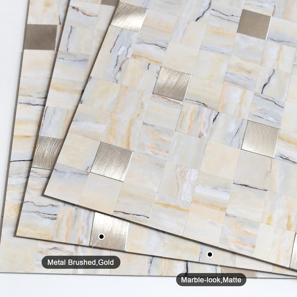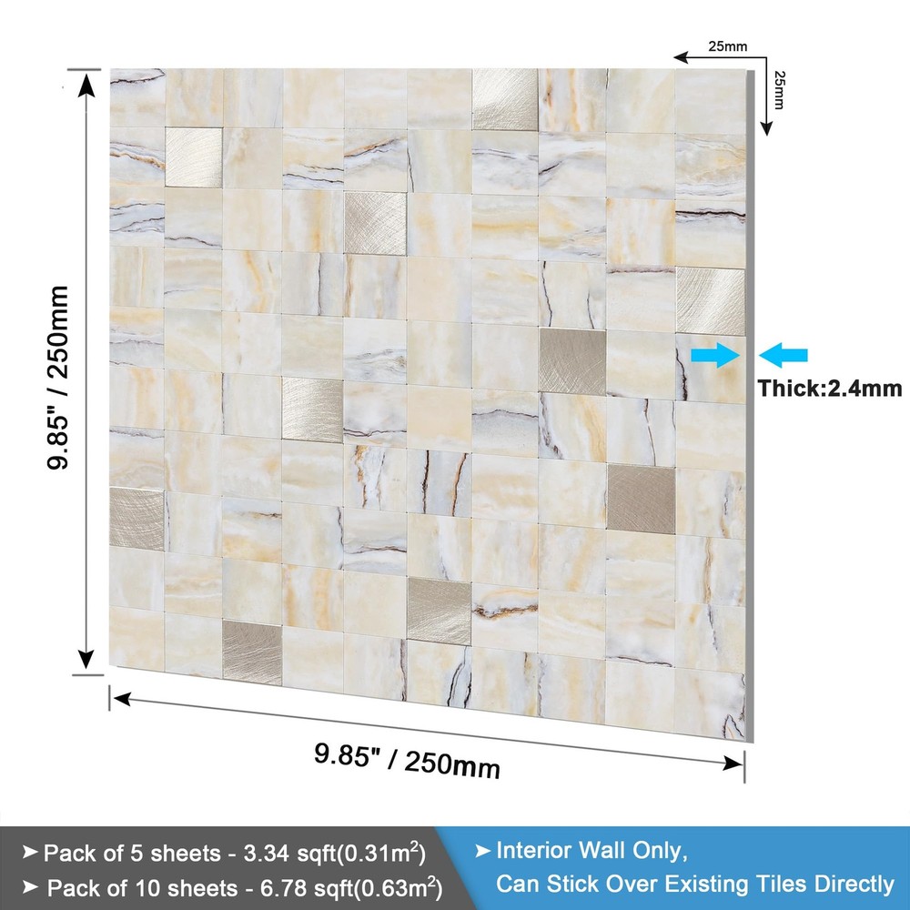 Square peel and stick backsplash,Kitchen peel and stick backsplash,Peel and stick bathroom backsplash tile,Peel and stick marble backsplash,Peel and stick backsplash,Peel and stick tile,Backsplash tile for kitchen peel and stick,Peel and stick backsplash for kitchen,Wall panels,3d wall panel,Backsplash,Kitchen backsplash tiles peel and stick,3d wall panels peel and stick,Kitchen backsplash,Stick on backsplash for kitchen Peel and Stick Backsplash Tile Measurement:Square mosaic tiles with tight joints,imitation marble tiles,total 100 chips cutted and mounted on adhesive backing one by oone by hand,these are mosaic tile stickers instead of thin vinyl backsplash Easy DIY Peel and Stick Tiles Kitchen Tiles:Light weight and thin tile sheet,2.4 mm thickness,appr.0.22~0.23 lbs each sheet,just peel and stick.Ideal stick on tiles stickers for kitchen backsplash and bathroom wall panels,save your treasure time and job Backsplash Tile Features:Waterproof peel and stick shower tiles made of durable resin plastic material,surface high gloss finishing, stain-resistant.Easy to wipe with sponge or damp cloth Mosaic Tiles Peel and Stick:Perfect for bedroom,dining areas,bathrooms,offices,stairs,kitchen backsplash,mirror tiles or on any other smooth surfaces(such as metal,glass,stainless steel, ceramic,plastic,wood, etc.) Worthful to Buy Waterproof Stick on Tiles:Adhesive wall tiles peel and stick,easier to work with than big rolls or larger tiles as they can be easily trimmed with scissors or utility knives so you can customize them the way you want