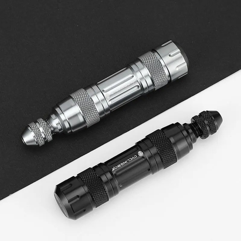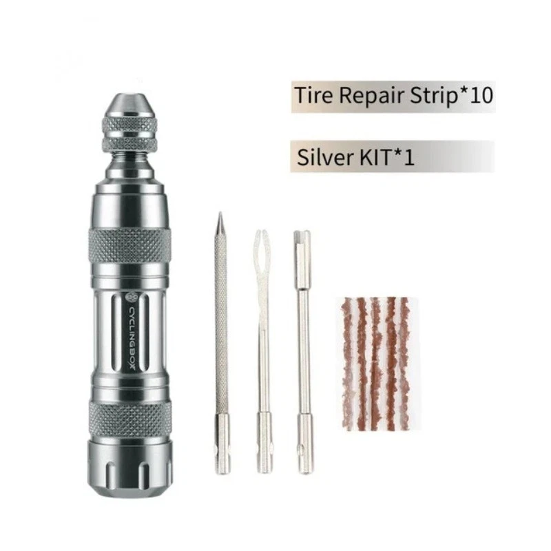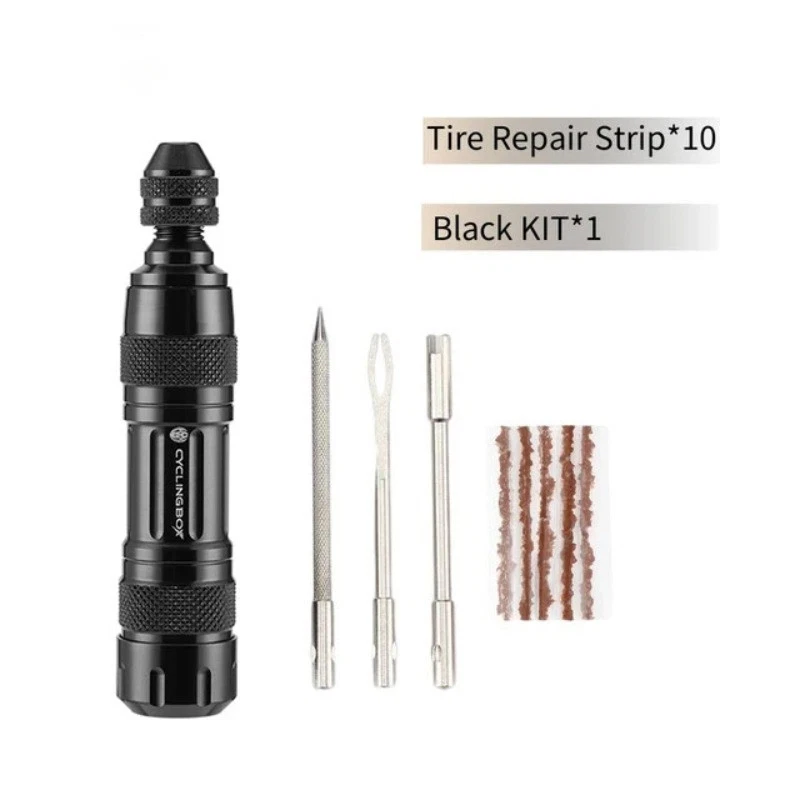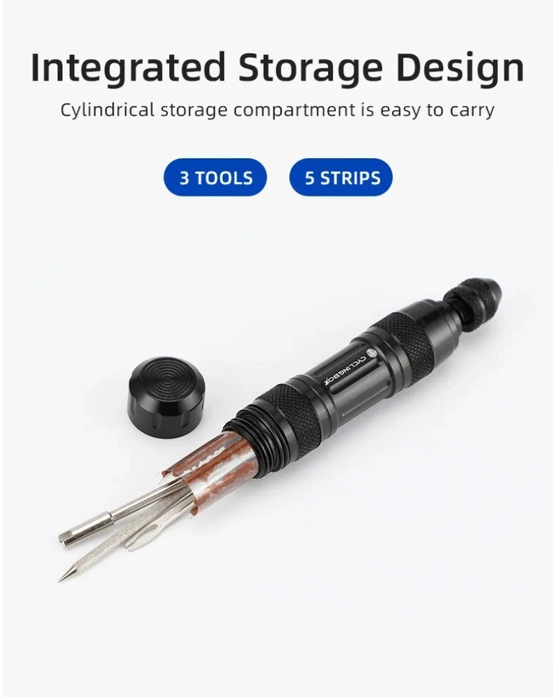 Product specification: Product name: bicycle tyre repair tool Material: aluminum alloy Color: black and silver Features: 3 kinds of drilling tools (file, pin and vent) Size (length * width): about 9.2 * 2.2cm Product advantages: 1. Used for emergency repair of bicycle tires without installation. 2. Sharp and strong drill. 3. Mini size and light weigth(Portable and simple to use). 4.Made of aluminum alloy, strong and durable. 5.Clever design, bring your own storage bin for easy storage. 6.Friendly Reminder: Suit for Tubeless Tire Bicycle!!! Notices: 1.Please allow 1-2mm differs due to manual measurement, thanks. 2.There could be some slight differences in the color tone of the pictures and the actual item. 3. If there is any problem with the product, please contact me before you leave a comment, I will do my best to solve the problem for you.Thank you for your understanding.