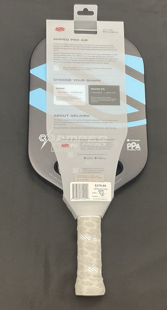 This Selkirk Amped Pro Air Invikta Carvana Pickleball Paddle is a great choice for any player looking for improved control and speed in their game. With its unique design and high-quality construction, this paddle is sure to enhance your playing experience. Made in China, this paddle is a must-have for any serious player who demands the best. The brand Selkirk is known for their innovative designs and commitment to quality, and this paddle is no exception. With its Amped Pro Air model, this paddle offers exceptional power and maneuverability, making it the perfect choice for players of all levels. So whether you're a seasoned pro or just starting out, this Selkirk Amped Pro Air Invikta Carvana Pickleball Paddle is sure to improve your game.