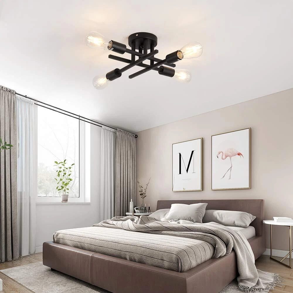 -Semi flush mount ceiling light CLOSE TO CEILING LIGHTING DESIGN --Semi flush mount chandelier light with elegant and rustic look, not only a farmhouse lighting, but also a modern beautiful decoration. Indoor ceiling fixtures flush mount design creates a comfortable and modern ambiance to your house.(Detailed installation video available) CEILING SPUTNIK LAMP SIZE --Indoor black ceiling chandelier light metal ,the top plate dia: 4.72 inch; fixture light total height: 5.51inch. wide 14.96. Base type: E26 [BULB NOT INCLUDED]. Watt: 60 watt ,Dimmable purchase dimmer and dimming bul. PENDANT LIGHT FIXTURE DECORATION --Black flush mount light will be a nice antique lighting decoration gift for house remodel, housewarming, Valentine's Day, birthday, weddings, party, holiday decoration or other special events. FLUSH MOUNT LIGHT FIXTURE APPLICATION --Farmhouse light fixture is suitable for bedroom, beauty salon, dining room, living room, study room, bathroom, bookcase, hallway, balcony, porch, gazebo, bedroom etc. After-sales : we value customer experience, if you have any questions, we will solve it for you as soon as possible!