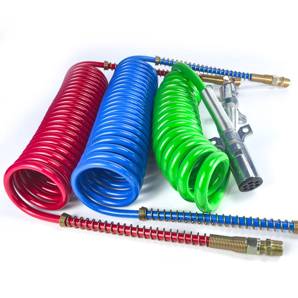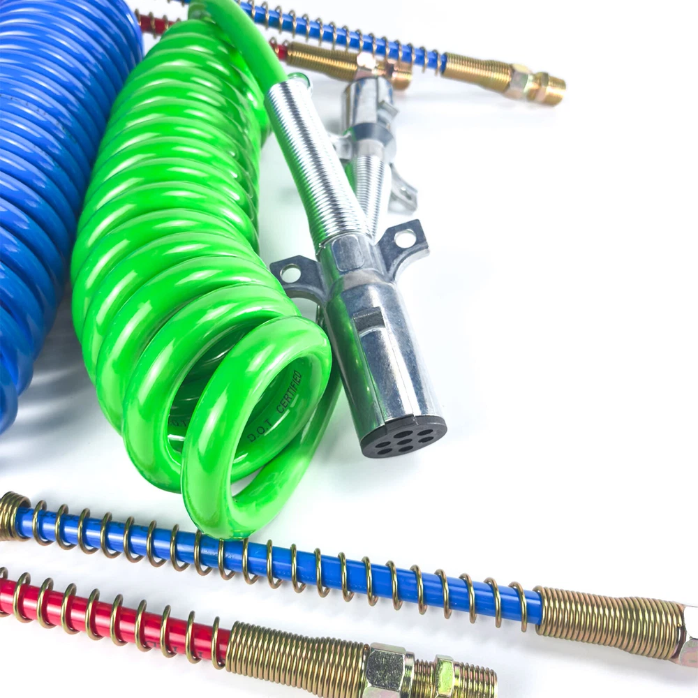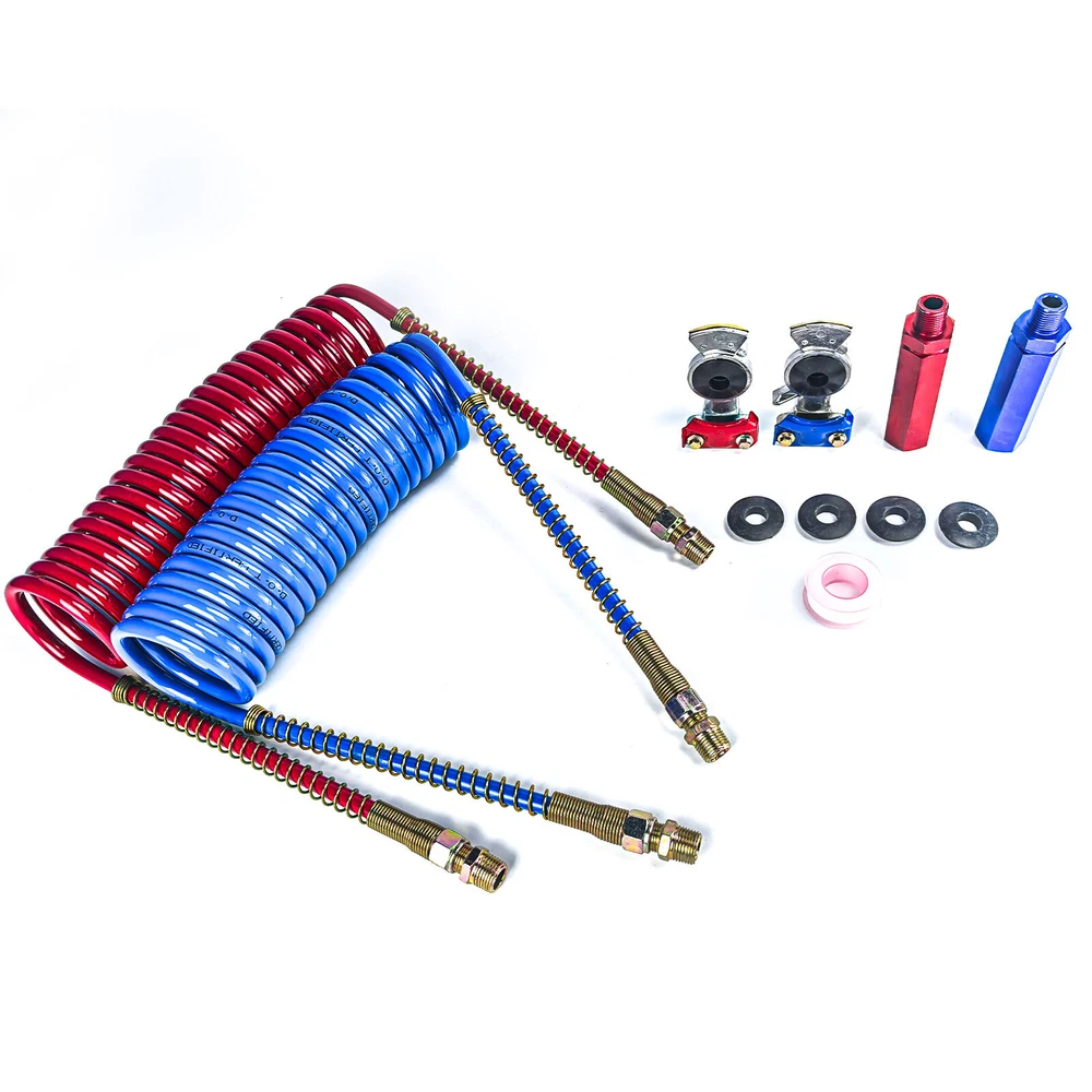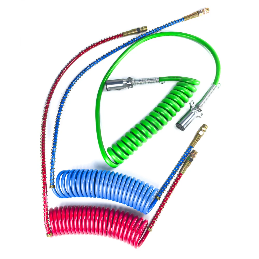 HOME ALL NEW ARRIVAL TOP SALE OTHER CATEGORIES All OTHER STORE NEWSLETTER Add my Store to your Favorites and receive my email newsletters about new items and special promotions! RECOMMANDATION DESCRIPTION Product Overview: Type: 3-in-1 Air and Electrical Lines Kit Components: Coiled Air Brake Hoses: Includes service (blue) and emergency (red) air lines. ABS Electrical Power Wire: 7-way trailer cord for connecting electrical systems Universal Connectors: Compatible with standard tractor-trailer connections. Features: Coiled Design: Prevents tangling and allows flexibility while maintaining organized connections. Retracts to avoid dragging on the ground or interfering with other components. Heavy-Duty Air Hoses: Constructed from high-quality materials to handle high-pressure air brake systems. Color-coded for easy identification: Red: Emergency line Blue: Service line 7-Way Electrical Cord: Powers trailer lights, ABS systems, and other electrical components. Weather-resistant and insulated to handle extreme temperatures. Durable Construction: Abrasion-resistant outer covering protects against wear, weather, and road debris. Secure fittings and connectors for reliable performance. Universal Compatibility: Designed to fit standard semi-trucks, trailers, and tractors. Meets or exceeds DOT (Department of Transportation) requirements. Applications: Semi-Trucks: Ideal for long-haul trucks connecting to trailers. Trailers: Supports air brake systems and electrical connections. Tractors: Perfect for agricultural and industrial towing applications. Benefits: Convenience: Combines air and electrical lines into one organized system. Safety: Ensures reliable air brake function and proper lighting/electrical power for trailers. Durability: Built to withstand harsh environments, frequent use, and high-pressure demands. Ease of Installation: Quick connection and disconnection with standard couplers and plugs. Maintenance Tips: Inspect Regularly: Check for wear, cracks, or damage to the hoses and electrical cord. Verify that connectors are secure and free from corrosion. Clean Periodically: Remove dirt, grease, or debris from the lines and fittings. Use a mild cleaner to maintain flexibility and extend the life of the hoses. Replace as Needed: Swap out worn or damaged components promptly to prevent brake or electrical failures. Protect Connections: Use dummy connectors or protective caps to shield fittings and plugs when not in use. SHIPPING PAYMENT RETURN CONTACT US FEEDBACK SHIPPING 1.Order before 3:30 pm CST ship in the Same Day . Please make sure entering correct payment and shipping information before checking out. Once your payment is completed, we are not going to accept any more changes to your order. 2. All domestic orders will be shipped via USPS,or Fedex from our US warehouse. . 3. Local pick up is available for all of our items. PAYMENT We accpet all major credit card and PayPal payments. RETURN All items purchased through texas-truck-parts support 6 MONTH WARRANTY. If items purchased through texas-truck-parts within 30 days that have not been installed can be returned for refund. Please email customer service and ship your order to the our address. Once we receive the return it will be inspected and the refund will be processed. CONTACT US We are committed to achieving 5 star ratings. We will try our best to resolve any kind of issue. Please contact us directly if you are not 100% satisfied or to confirm fitment of the items prior to ordering. FEEDBACK We strive for 100% customer satisfaction! FEEDBACK IS VERY IMPORTANT TO US. We request that you contact us immediately BEFORE you give us neutral or negative feedback, so that we can satisfactorily address your concerns. Free & Fast shipping 100% satisfaction guarantee 30 Days MONEY BACK 100% DELIVERED & TRACKED TOP QUALITY YOUR BEST CHOICE & 5 STAR SERVICE Copyright © Texas-Truck-Parts. All Rights Reserved. ABOUT US | ADD TO FAVS | FEEDBACK | CONTACT US
