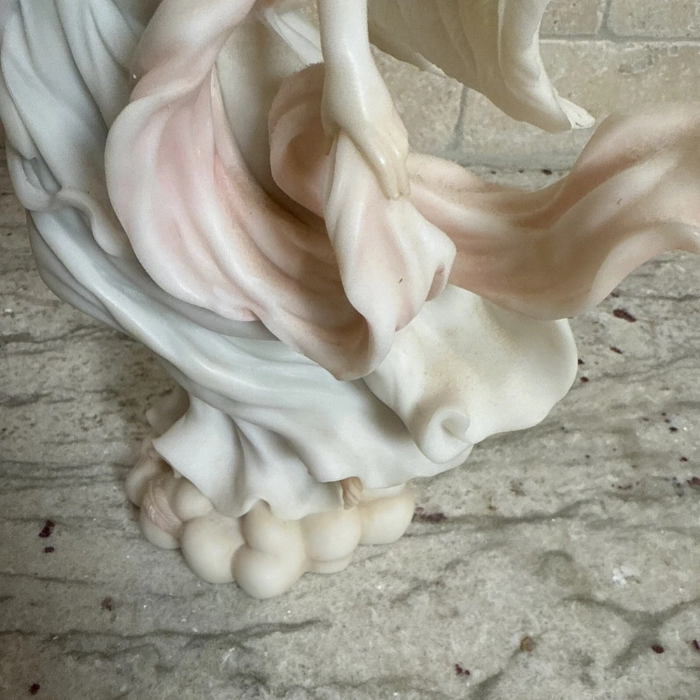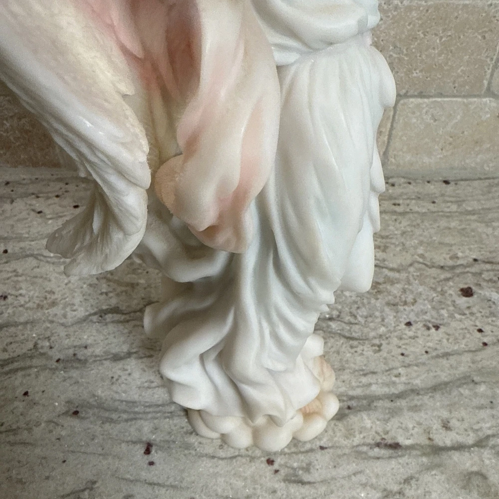 This beautiful figurine by Roman is a part of the Seraphim Classics collection and features a stunning angel design with the title "Light in the Distance". Measuring 12 inches in height and width, it is made of ceramic and porcelain materials with a natural finish. The multicolor design is perfect for all occasions and will add a touch of elegance to any room. The figurine is perfect for collectors and makes a great gift for teens, boys, adults, and girls. It is not signed and has no pattern or engraving. The model number is 78104 and it was manufactured in China during the 1990s. This Roman-style figurine is a great addition to any decorative collection and is sure to bring joy to any viewer.