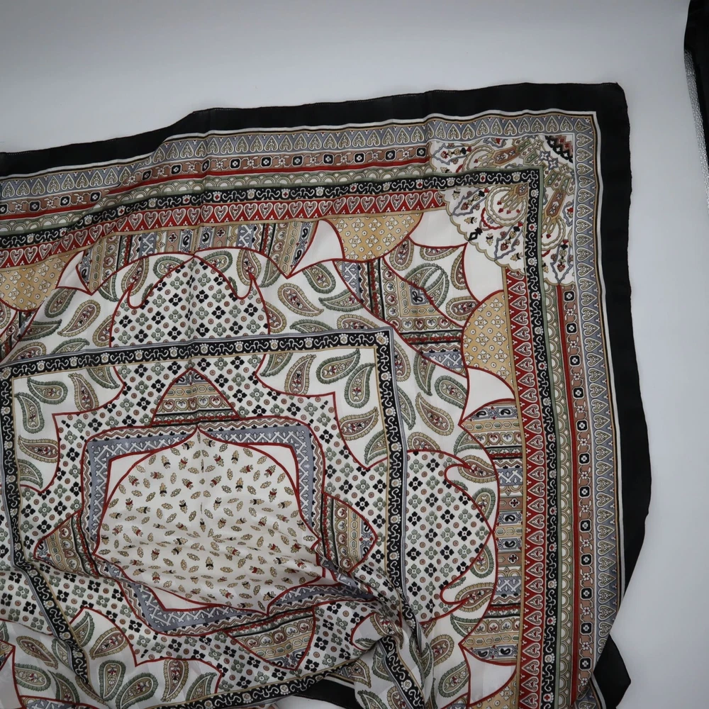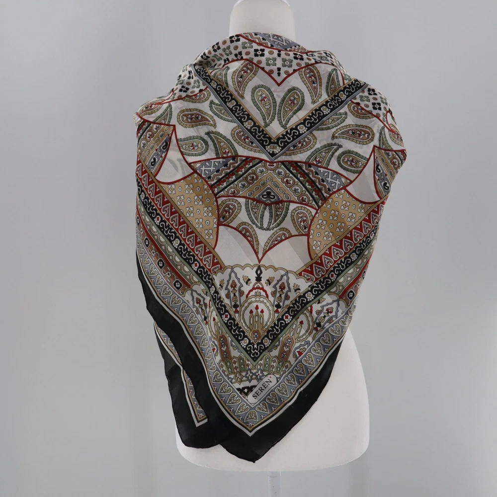 Style: Square Scarf Item Width: 45 in Handmade: No Seller Notes: “Gently worn with a few pulls in it.” Theme: Art, Beach, Bohemian, Countries, Hippie, Peasant, Preppy, Retro, Classic Personalize: No Vintage: No Department: Women Brand: Vintage Country/Region of Manufacture: Unknown Type: Scarf Pattern: Paisley & Geometric Season: Fall, Spring, Summer Features: Multifunctional Color: Multicolor Item Length: 45 in