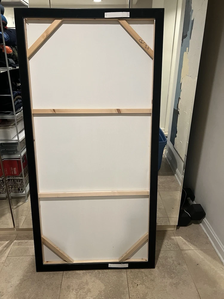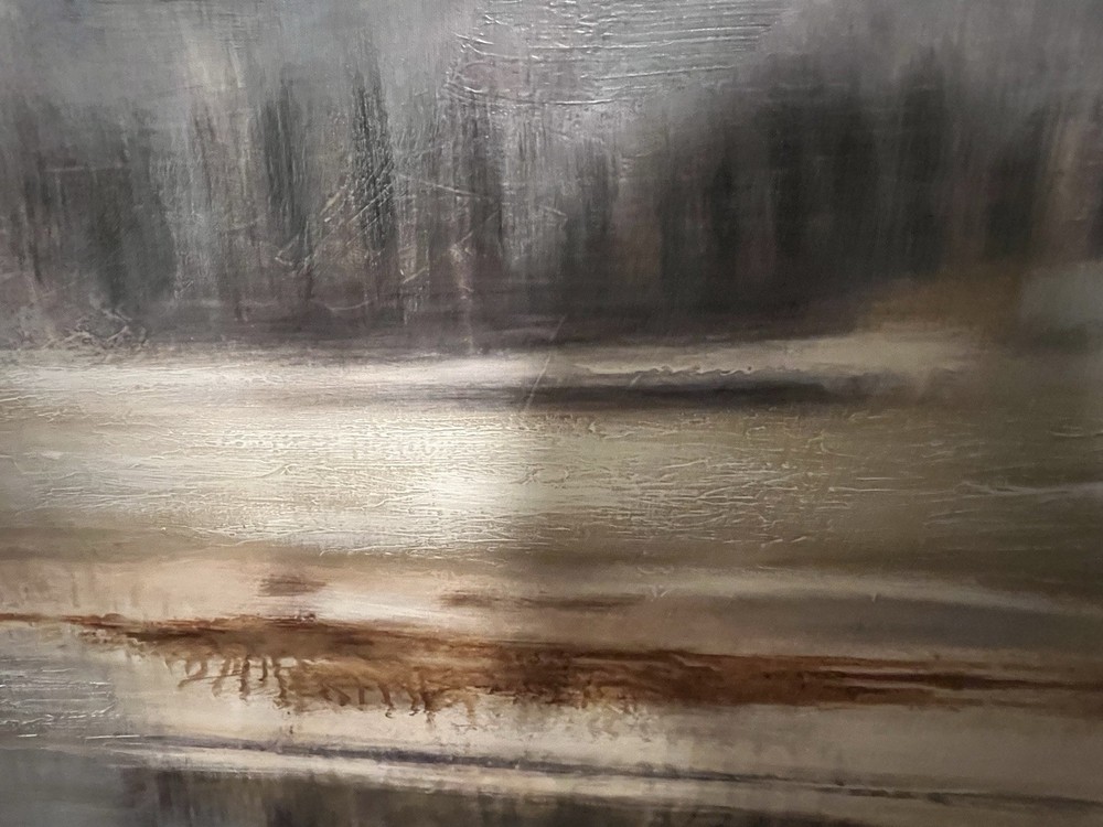 The Serene Abstract Winter Forest and Lake Canvas Wall Art by artist Lynch is a large piece featuring a beautiful landscape of a frozen lake and snowy forest. This framed wall art is perfect for the living room and requires no additional parts for display. With easy care instructions, this unique abstract artwork adds a touch of tranquility and elegance to any home décor. 5 feet wide x 30” high.