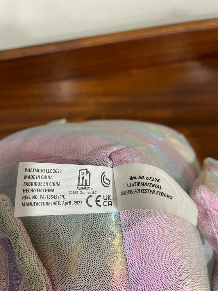 This product is a PhatMojo Series 2 Pet Simulator Deluxe Fantasy Plush, featuring a Rainbow Fairy character. It is an 8" plush toy and is part of the Pet Simulator Deluxe Fantasy Plush product line. The plush toy is a collector bundle item and is based on the Roblox video game. The product was manufactured in 2023.