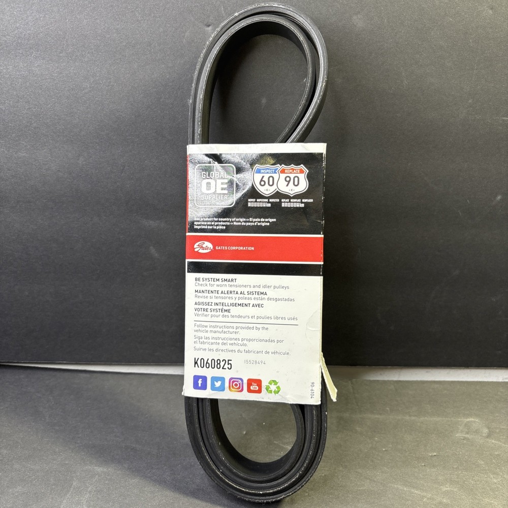 The Serpentine Belt-Premium OE Micro-V Belt by Gates is a high-quality replacement part for car and truck engines. This V-belt, specifically designed by Gates with the manufacturer part number K060825, ensures optimal performance and durability. Made by a trusted brand known for its reliability, this belt is a crucial component in ensuring the proper functioning of your vehicle's engine system.