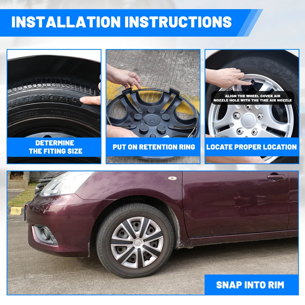 Head Lights Tail Lights Fog Lights Turn Signal Bumper Fender Flare Inner Fender Hubcaps Refrigerator Other Items for sale Head Lights Tail Lights Fog Lights Turn Signal Bumper Fender Flare Inner Fender Liners Portable Refrigerator Set 4PCS 16” Universal Hubcaps Wheel Rim Covers Snap On Car Truck Silver & Mould Description This set of 4 wheel covers easily installs over your existing factory steel wheels in minutes! These wheel covers are constructed from durable, automotive grade plastic and feature an attractive silver finish for a custom look. Feature Set of Silver & Mould Texture Wheel Covers. To Buy This Hubcap Your Rim Size Must Be 16". The high-quality manufacturing process can prevent the product from cracking, fading and powdering. Made of high-quality hard and durable ABS plastic, which is strong and durable. Hubcaps have the A grade retention ring. It won't come off while driving as long as the hubcaps are installed properly High quality Flexible ABS material Adjustable buckle design. NOTICE: Just fit for ironhub,Not for aluminium alloy hub! Please check the hubs before purchasing! Package include: 4× Wheel Hubcap Cover Payment Shipping Return About us Contact us Payment Appreciated for the prompt payment, Contact us if bid by mistake, system open unpaid item automatically. Payment must be complete within 3 days from the date you purchase or after the end of auction. Items unpaid within 3 days of the auction end will be forfeited. We reserve the right of cancel the order and re-selling the items. Shipping All shipment will ship by UPS or USPS . All items will be ship within 1 working days , and we will ship out all orders as soon as possible after payment verified, please allow up to 1-4 business days for delivery. CANADA & International customers please note: your government might charge a duty tax (brokerage fees). We do not responsible for any custom duty or import tax. Why Choose the US Stock? 1. Us Local Shipping, No Extra Customs Cost to the US. 2. Fast Delivery: 1-4 Working days Delivery. 3. Best After-Sales Service!!! Return The buyer is responsible for all return shipping including a result of customer error or defective item. 1) If you received an incorrect, damaged, defective, or item not as described, contact us for full refund or replacement on our cost. 2) If you want to return the item, please contact us within 60 days after package received. Return products must also be in its original condition: including box, packaging and all other accessories. About us We are the best auto parts, we have been pursuing excellence, continuous exploration as the slogan, let customer satisfaction is our purpose! We adhere to the United States local delivery, one year warranty! Welcome! Contact us How Should You Contact us? Please Read The Item Description And See if The item Fits Your Vehicle Exactly. If You Found Any questions, Feel Free to email us by "Ask a question" Our Office Hours Are Monday - Friday 8:00am - 5:00pm PST / 11:00am - 8:000pm ET, We Do Not Answer Any E-Mails On Weekend, And We Will Reply All E-Mails In The Order It Was Receive. All E-Mail Take Us Around 24 Hours To Respond To Any E-Mail. We Are Close During The Weekends And We Do Not Answer Any E-Mails During That Time.