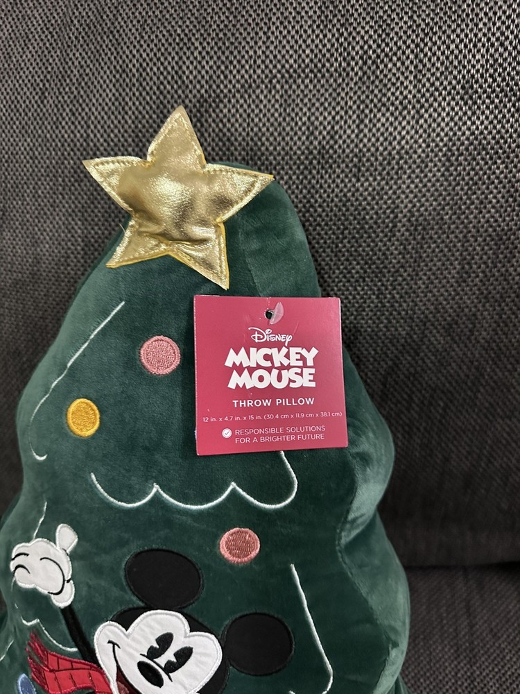 This set of 2 Disney Festive Mickey Mouse Tree Pillows with Gold Star features a multicolor design with the iconic character Mickey Mouse. The pillows are star-shaped and adorned with gold stars, adding a touch of holiday and seasonal decor to any home or garden. Perfect for fans of Disney and collectors of festive holiday items, these pillows are sure to bring a touch of whimsy and magic to any space.