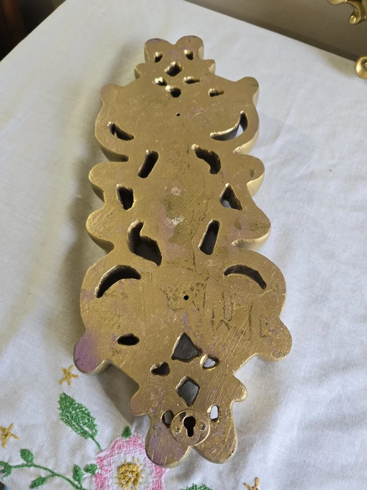 Set Of 2 Handpainted Wall Hanging Gold Scrolls Shabby French Country Cottage