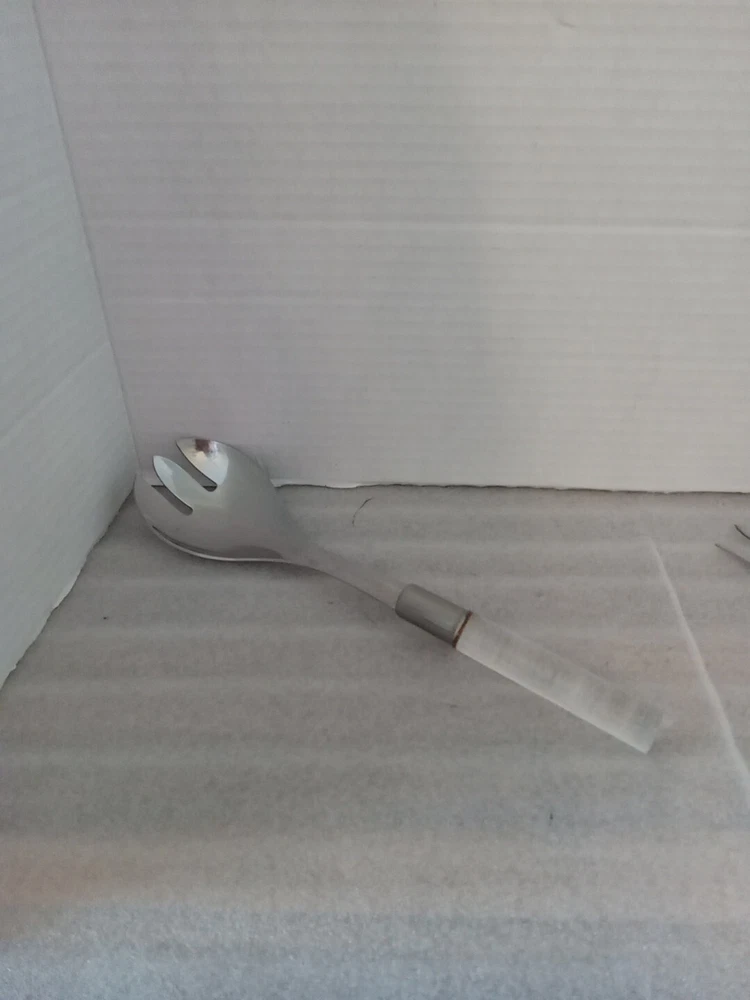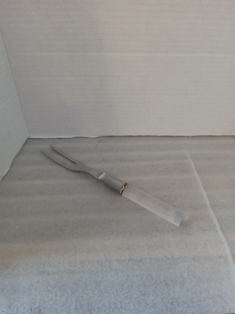 Add a touch of Mid-Century Modern to your dinnerware collection with this set of 3 Hamleton Forge stainless steel utensils. The clear acrylic handles make them a stylish addition to any table setting. This set includes cheese knives and spreaders, a fork, and a spoon, all of which are original pieces from the 1960s. The stainless steel material ensures durability and longevity, while the acrylic handles provide a comfortable grip. Perfect for any adult who appreciates unique and functional collectibles, these utensils are sure to impress.