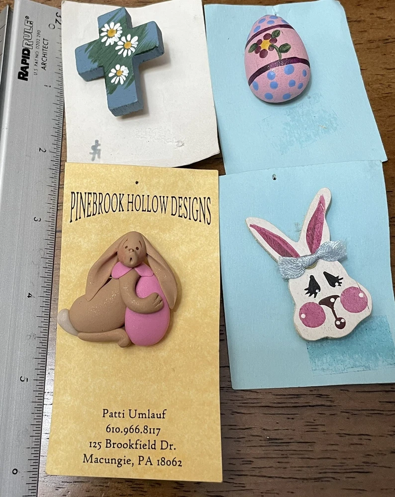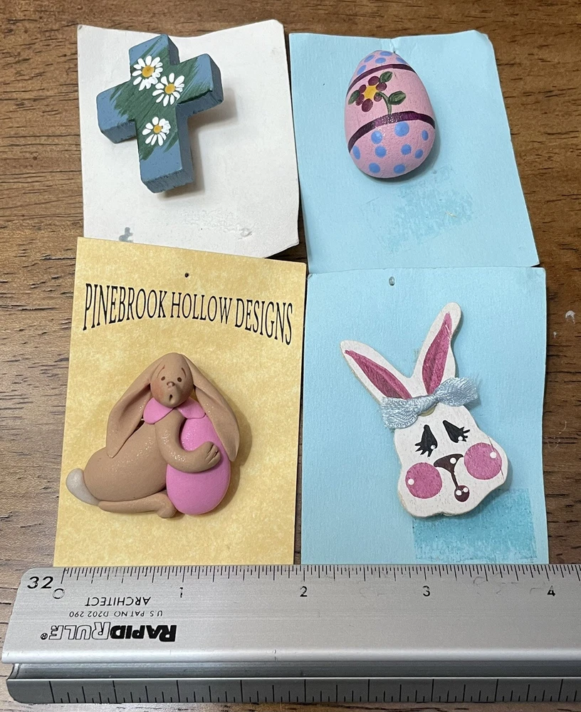 Set Of 4 Easter lapel Pins- Bunny Rabbit, Holy Cross, & Easter Egg