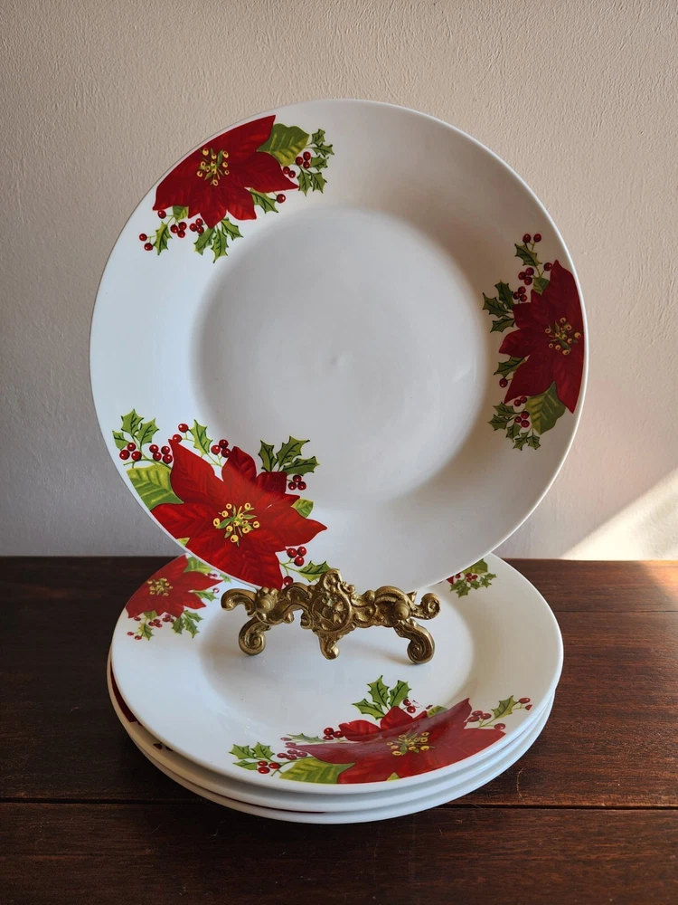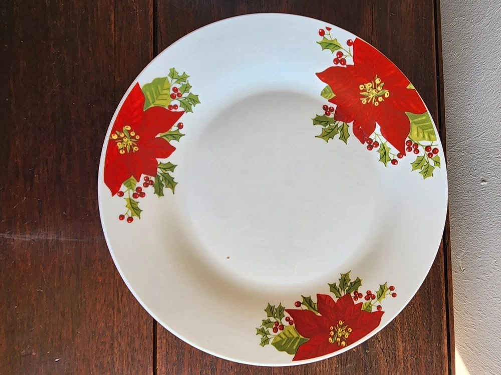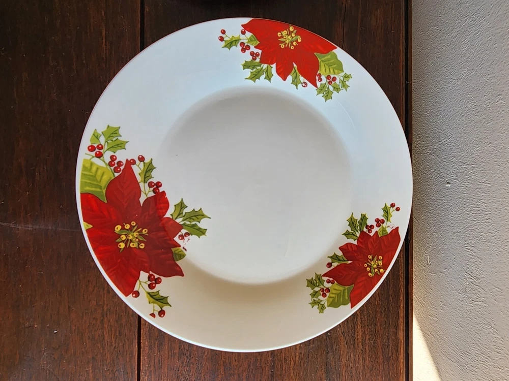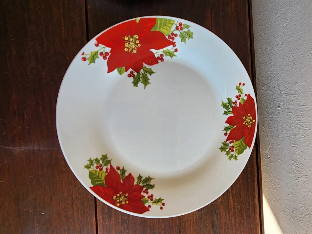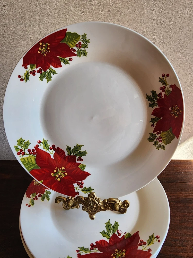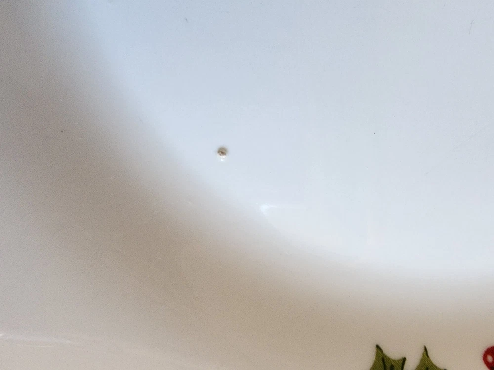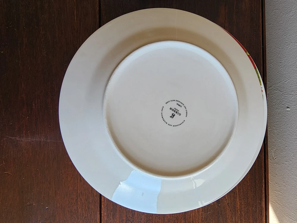 One plate has a tiny black dot on the front and another has a spot that appears to have been made that way. No chips or cracks.