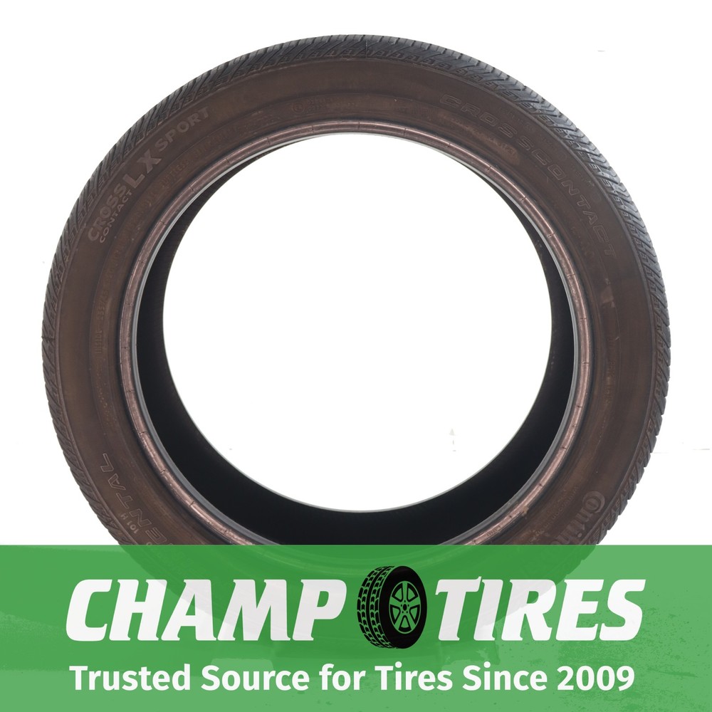 itemTitle Champtires is not an authorized Continental dealer. The manufacturer warranty does not apply. P255/45R20 Continental CrossContact LX Sport AO 101 H Used 8/32nds About Champtires Since 2009, Champtires has sold new and the best used tires to drivers across the U.S. Champtires fully inspects – visually and by air-testing – all tires. Some tires have been repaired using an industry-standard plug-patch combination that will last the lifetime of the tire. Champtires will not repair a tire’s sidewall. Tires cannot be returned for having repairs. If you have a question about whether a tire has been repaired or not, send us a message on eBay prior to making a purchase. Tread depths are accurately measured. If you have questions about manufacture dates (DOTs), please also send us a message before placing an order. About our Tires Champtires sources only the highest quality used tires. All tires go through a three-step inspection process, which involves a visual inspection, air-testing and a final check before shipping. Tread depths are accurately measured. Some tires have been repaired using an industry-standard plug-patch combination that will last the lifetime of the tire. Champtires will not repair a tire’s sidewall. Tires cannot be returned for having repairs. If you have a question about whether a tire has been repaired or not, please send us a message. If you have a questions about a tire’s manufacture date, please send us a message as we would be happy to provide the DOT. Customer Service If you have any questions about our tires, including repair status or manufacture date, please send us a message through eBay. All messages will be answered within 24 hours, most often within a few hours. Shipping Details We ship using FedEx Ground to the continental 48 states. Your tires will leave our facilities within one business day. Return Policy Tires can be returned within 30 days if they were inaccurately described or damaged. Please send a message with any return requests. Disclaimer Limitation of Damages: Under no circumstances, including negligence, shall Champtires be liable for any direct, indirect, incidental, special, punitive, or consequential damages that may result from the use or inability to use any product(s) purchased from Champtires, including but not limited to flaws/defects, or any other failure or inadequacy related to the product(s). Disclaimer of Warranties: The product(s) purchased from Champtires are provided “as is,” with all faults, and without warranties of any kind, either express or implied, including but not limited to implied warranties of merchantability and/or fitness for a particular purpose. Pure Pass Through: Champtires is a pure pass through retailer of products, and such products are provided “as is”, with all faults. Assumption of Risk: The product(s) purchased from Champtires are provided “as is,” with all faults. Purchaser acknowledges the risks associated with purchasing a product “as is” and assumes any and all such risks.