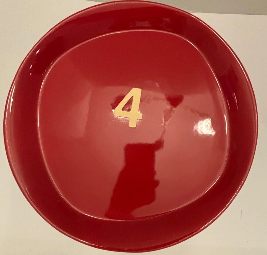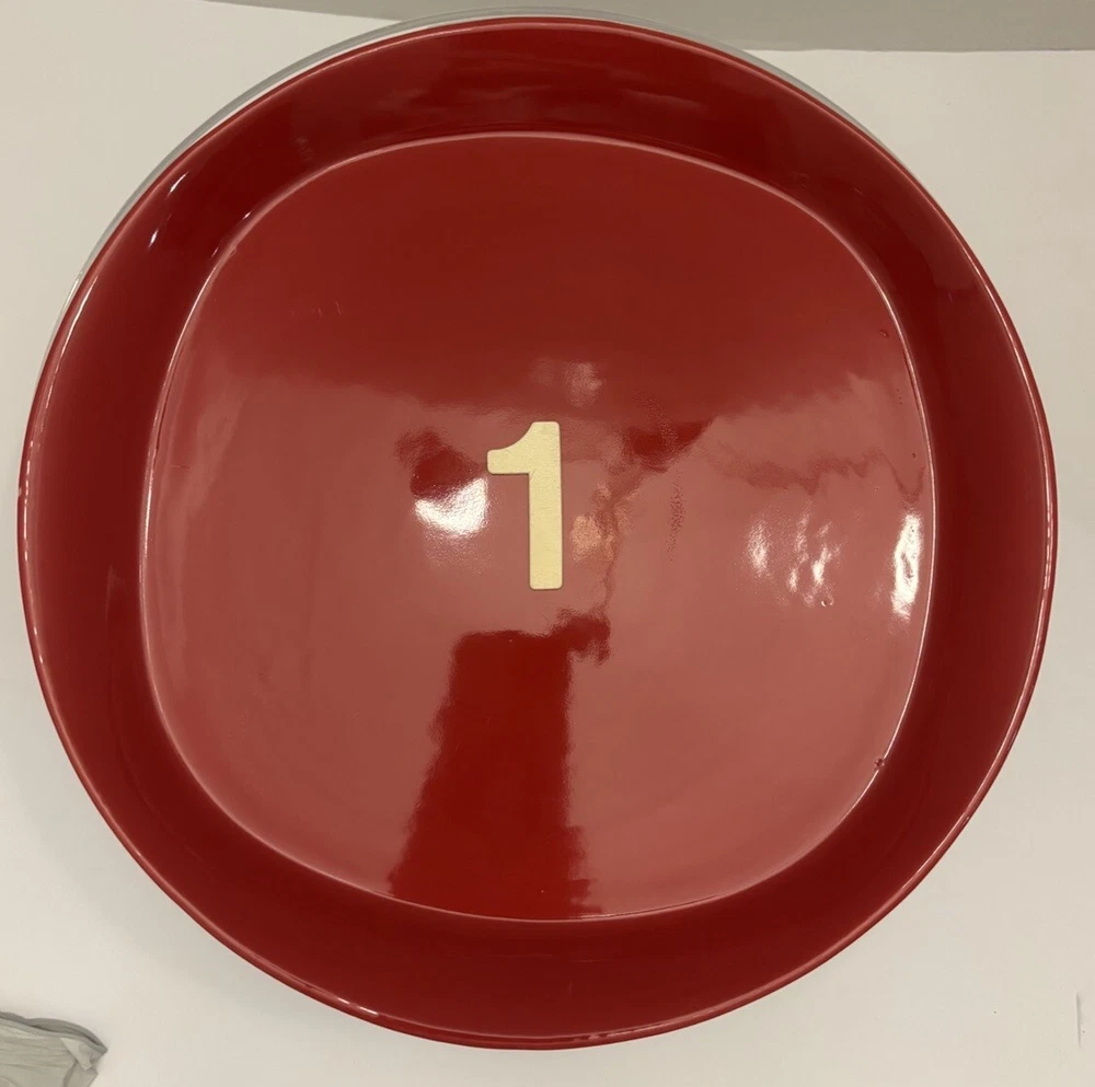 They are all in excellent condition, there are no chips, cracks, breaks, crazing or stains. There is a small defect in one of the plates during production. Please see pictures. But it is not a chip, it just wasn’t fully painted during production. We ship with TLC Fast shipping Elevate your dining experience with this vibrant set of four red Rachael Ray dinnerware plates. Each plate, measuring 11 inches, effortlessly combines the warmth of a round shape with the practicality of a square design, perfect for mix and match dining. Crafted from durable stoneware, these plates are finished with a glossy sheen that makes them a standout addition to any table setting. Ideal for all occasions, whether you're hosting a special dinner or enjoying a casual meal, these plates are as versatile as they are stylish. The rich red hue adds a pop of color to your kitchen and is in keeping with the playful, yet sophisticated theme of food and drink. Complete your dinnerware collection with this original, chic, and functional set that's sure to impress.