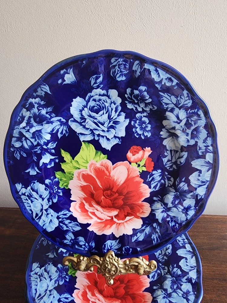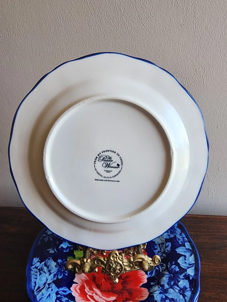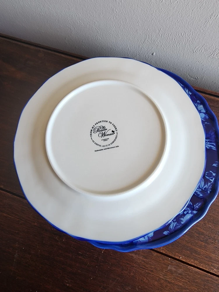 HomeSet Of 4 VTG Heritage Floral Pioneer Woman Blue Stoneware 8-3/4" Dessert Plates