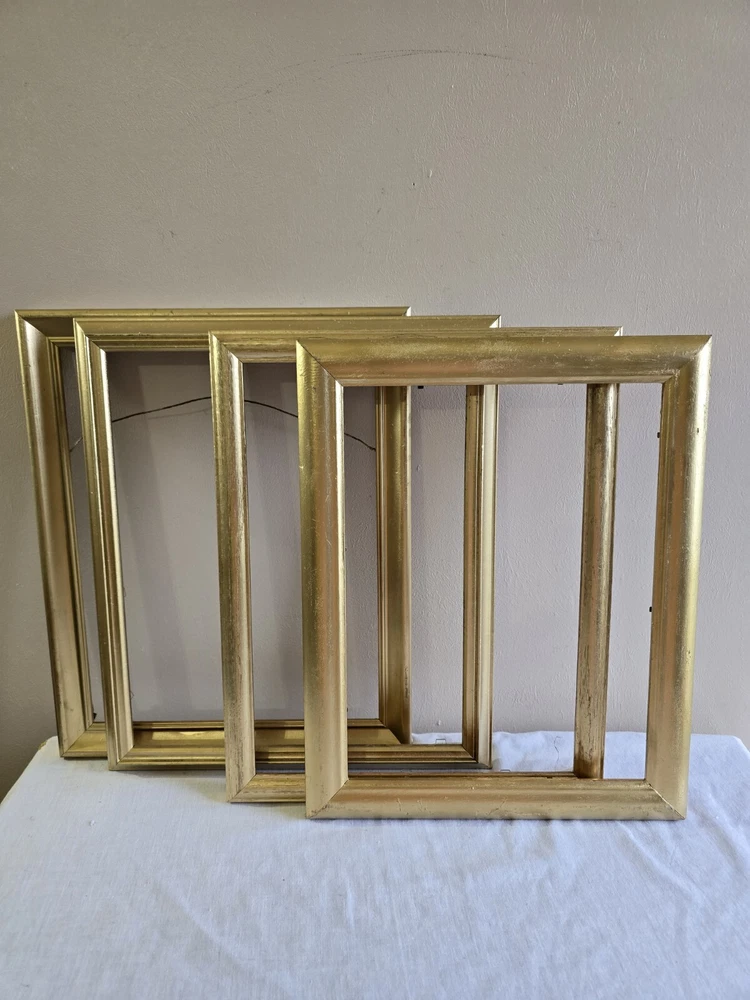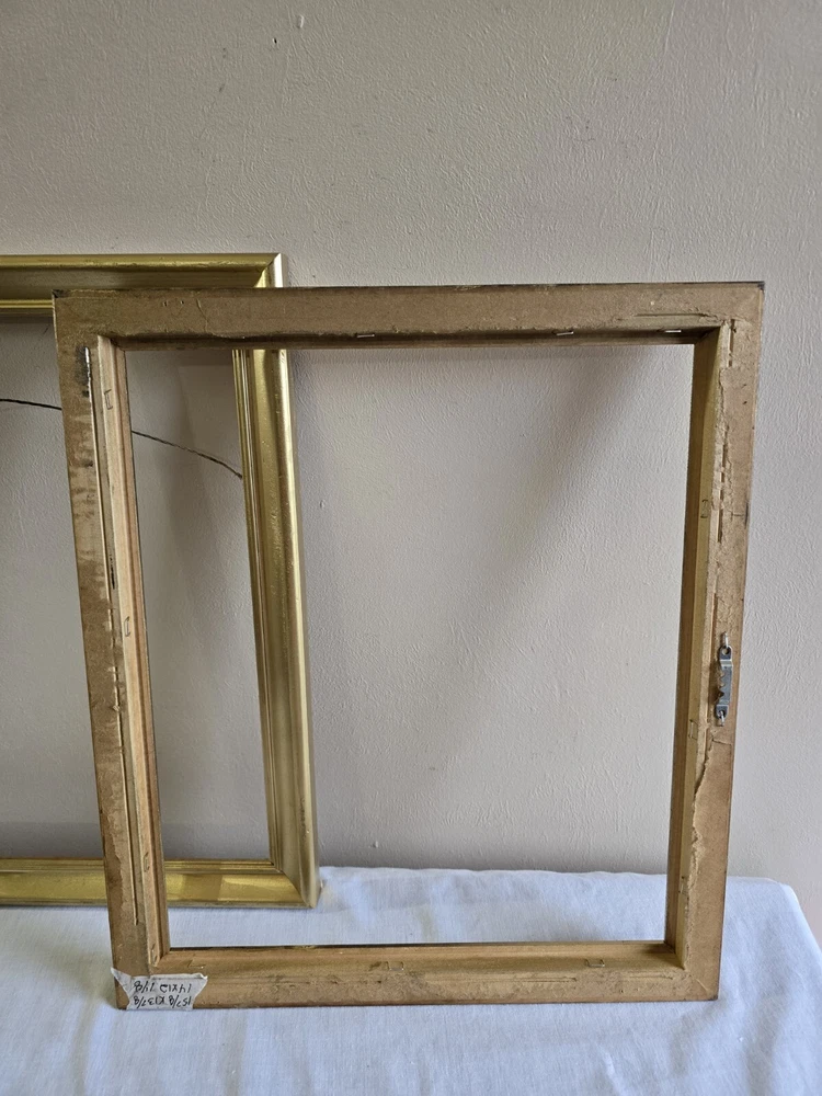 The frames have scratches. No glass. frame size photo size 16 x 13 x 1-1/8 in 11 x 14 in 15-7/8 x 13-7/8 in 14 x 12 in 15-3/8 x 12-3/8 x 1-3/8 in 13 x 10 in 15-5/8 x 12-5/8 in 14 x 11 in