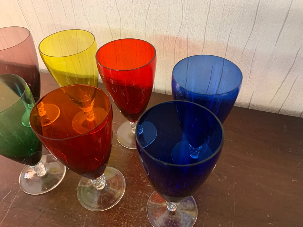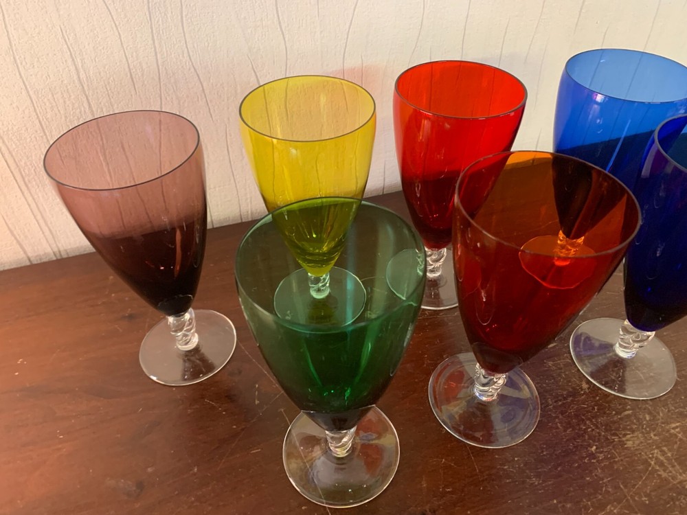 Set Of 7 Colored Glasses (Price Of The Set) The description of this item has been automatically translated. If you have any questions, please feel free to contact us. Set of 7 colored glasses (lot price) price of 7 glasses State : very good dimensions: height: 17 cm diameter: 8 cm Come visit our eBay store: https://www.ebay.fr/sts/cristaldecorbaccarat protected and secure shipping world Set of 7 colored glasses (lot price) price of 7 glasses State : very good dimensions: height: 17 cm diameter: 8 cm Come visit our eBay store: https://www.ebay.fr/sts/cristaldecorbaccarat protected and secure shipping world