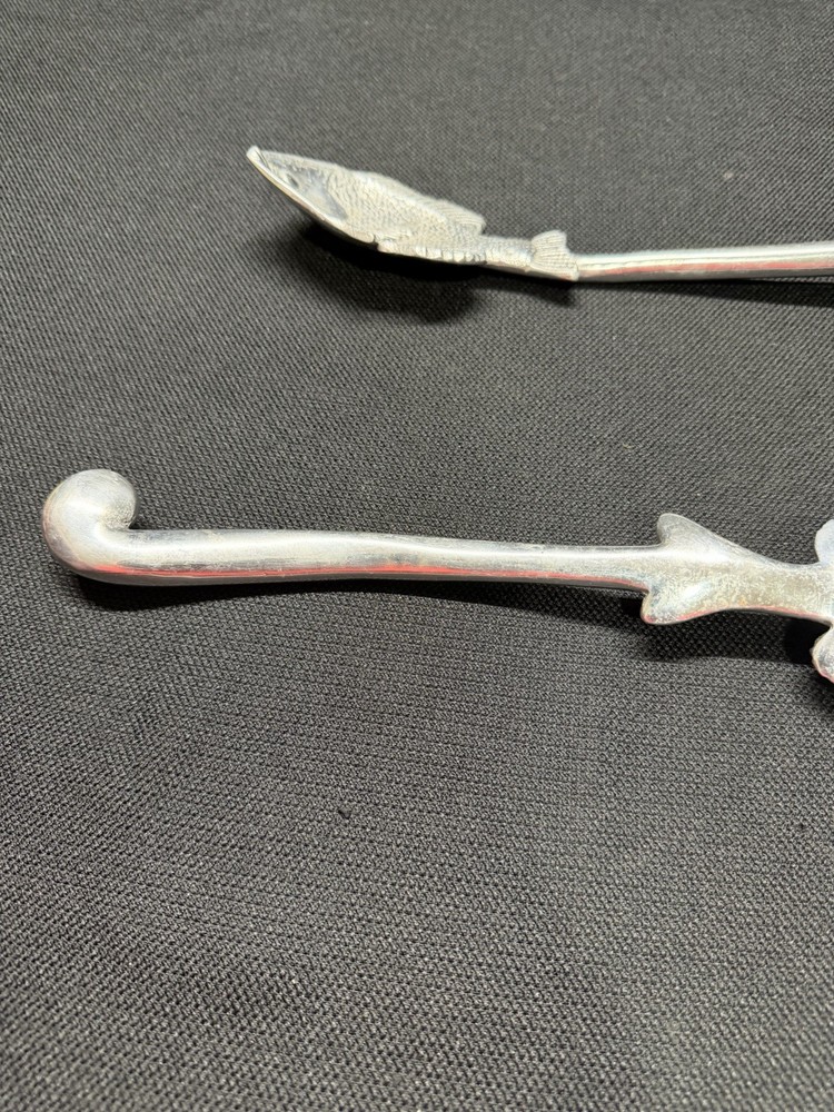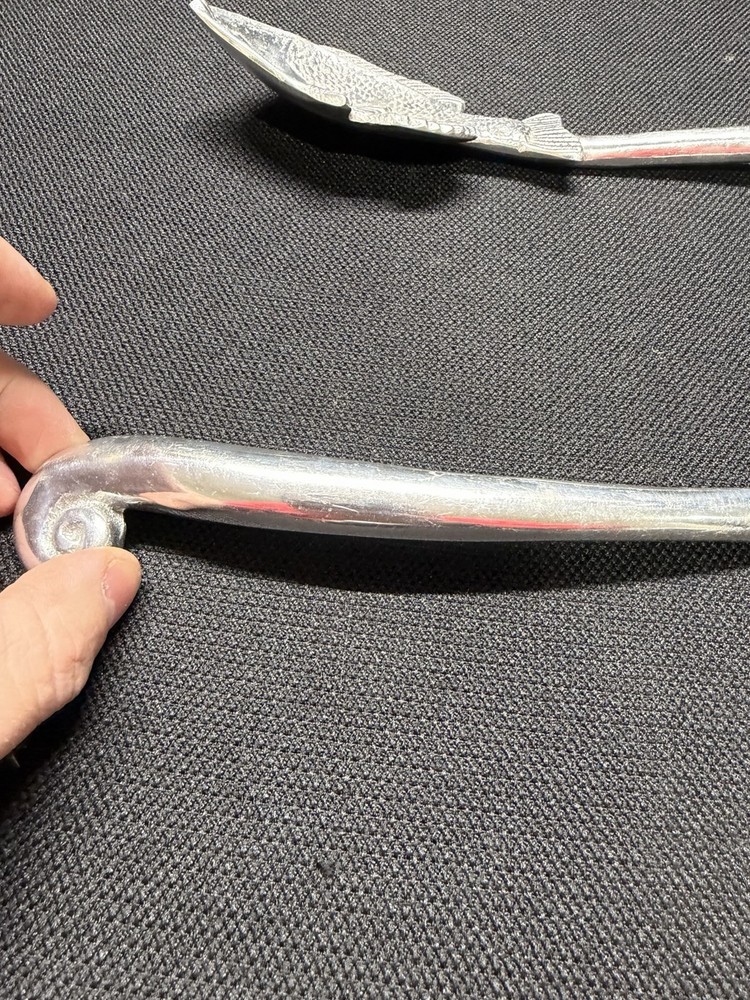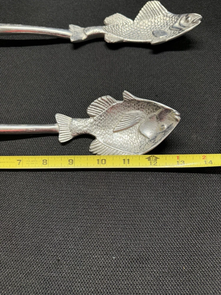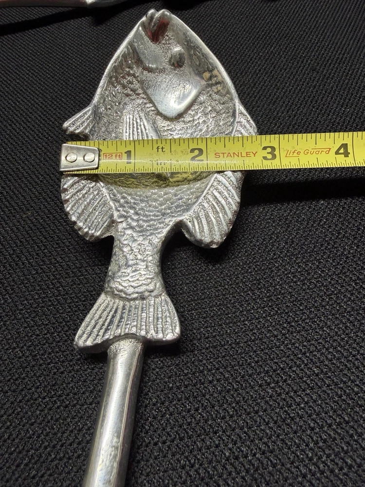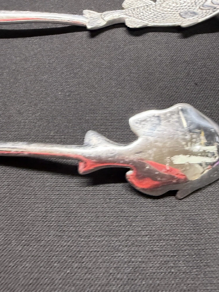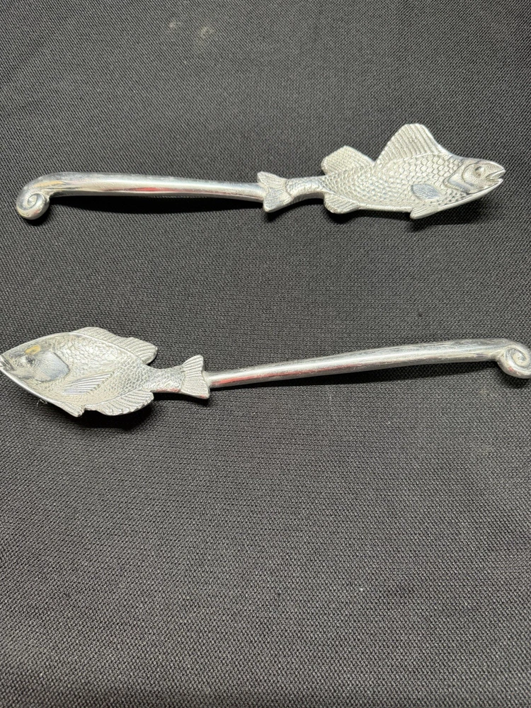 Serving spoons are in used preowned condition with scuffing and scratches. One spoon has left over sticker on backside. Please see photos for condition and measurements. Selling as is, any questions feel free to send a message.