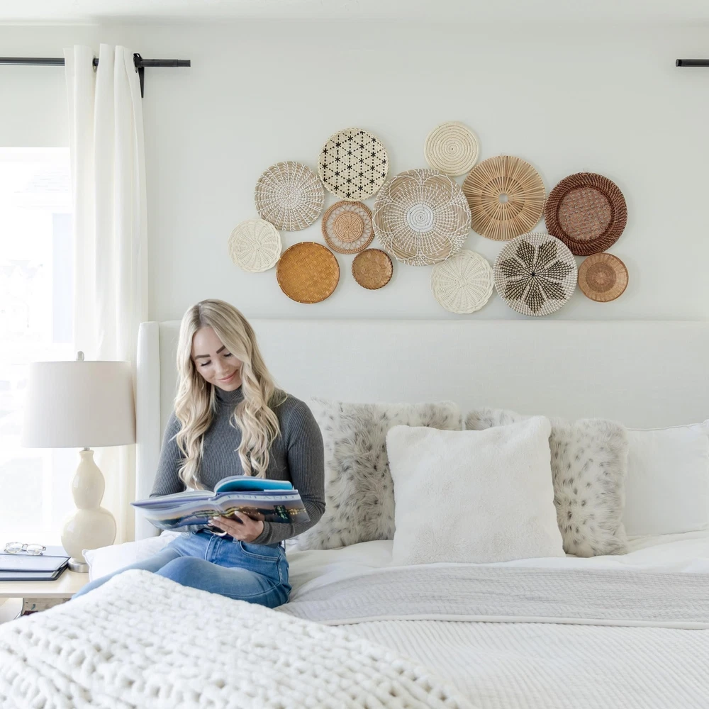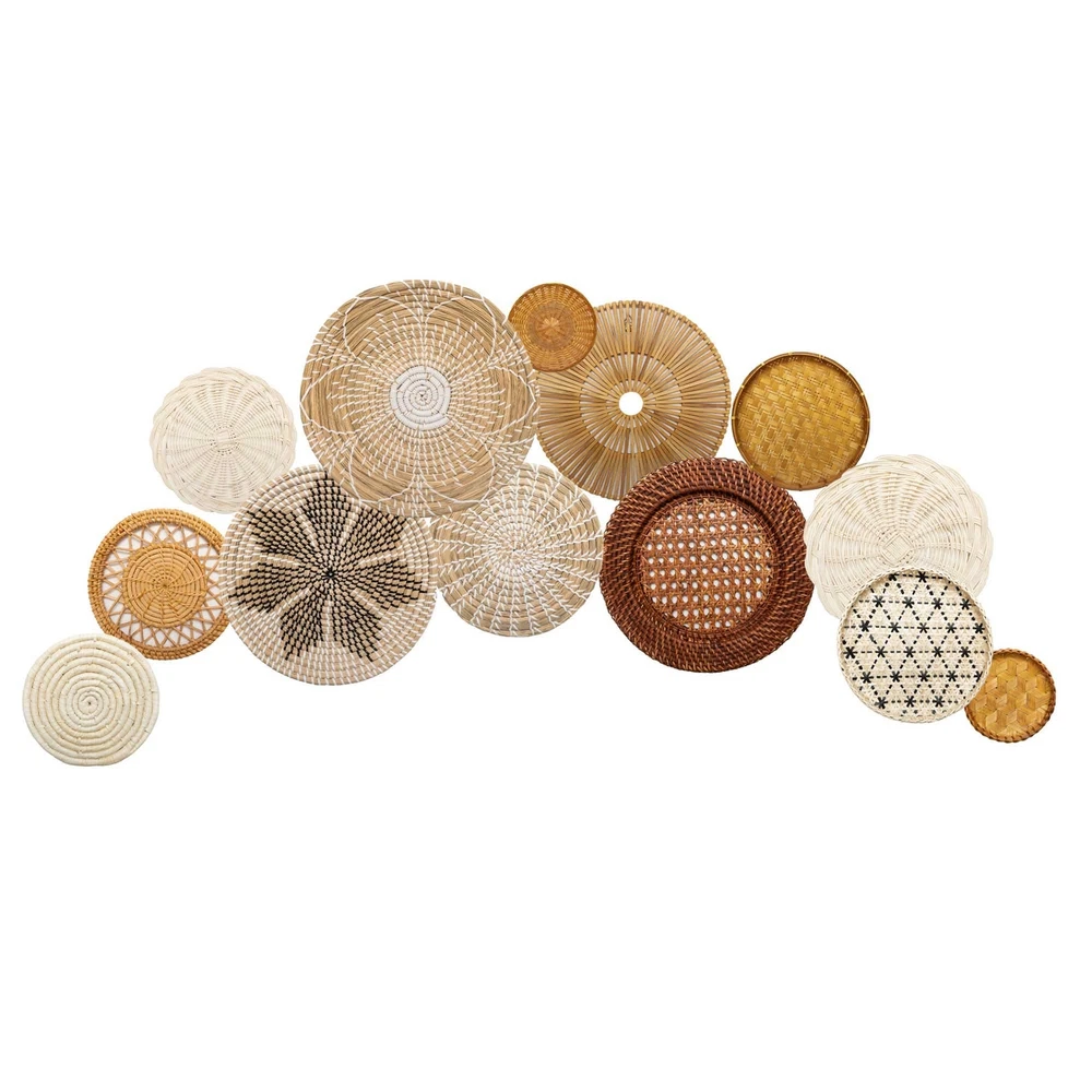 Instant Affordable Decorating: Why spend a fortune on costly prints and paintings? Our Wall Hanging Basket Set gives you 13 round wicker baskets handwoven by Vietnamese artisans; In just minutes, you can create a beautiful accent wall, transform a bare, boring living room, or warm up an empty entranceway – all without busting your budget Unique Combination of Textures: Unlike most wall-hanging sets, ours provides 3 different kinds of premium wicker baskets: 4 seagrass, 5 bamboo, and 4 rattan; The result is an eye-catching interplay of natural tones and textures; What's more, each woven basket boasts its own exquisite design; as a result of their handmade nature, they may have subtle variations in color and size Incredibly Easy to Hang: Each seagrass, bamboo, and rattan basket comes with its own sturdy nail for hassle-free hanging; Plus, you get a set of Kraft paper templates, which you can use to pre-design the way you'll arrange your baskets; You even get a special pencil for marking the place on the wall where you'll position each basket Countless Decorative Possibilities: With their neutral tones and natural textures, these medium, large, and small wicker baskets complement any decor, from rustic to retro, boho to farmhouse, coastal to African; Plus, they easily double as tabletop trays; Use them to display dried flowers and grasses, knick-knacks, fruits, candies, etc. Your Satisfaction Is Our #1 Priority: As a small family-owned firm, we bring you premium handcrafted home goods featuring the finest natural materials; Case in point: these Wall Hanging Baskets for kitchen, living room, and beyond; We're sure you'll love them, but if you don't, simply return them within 30 days for a full money-back refund