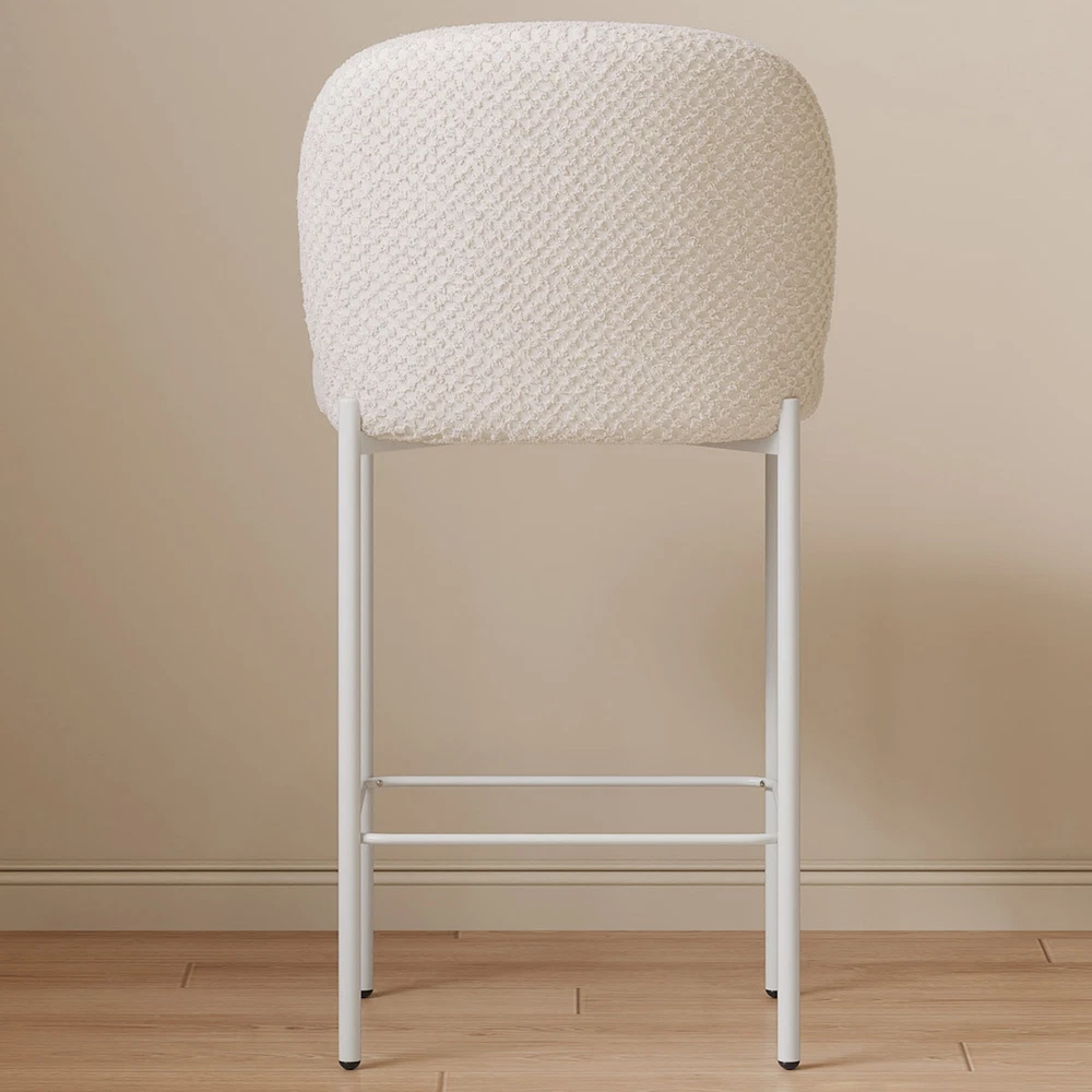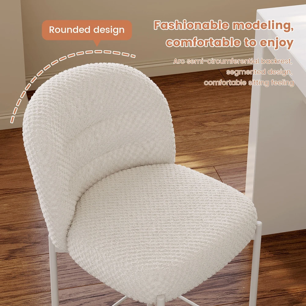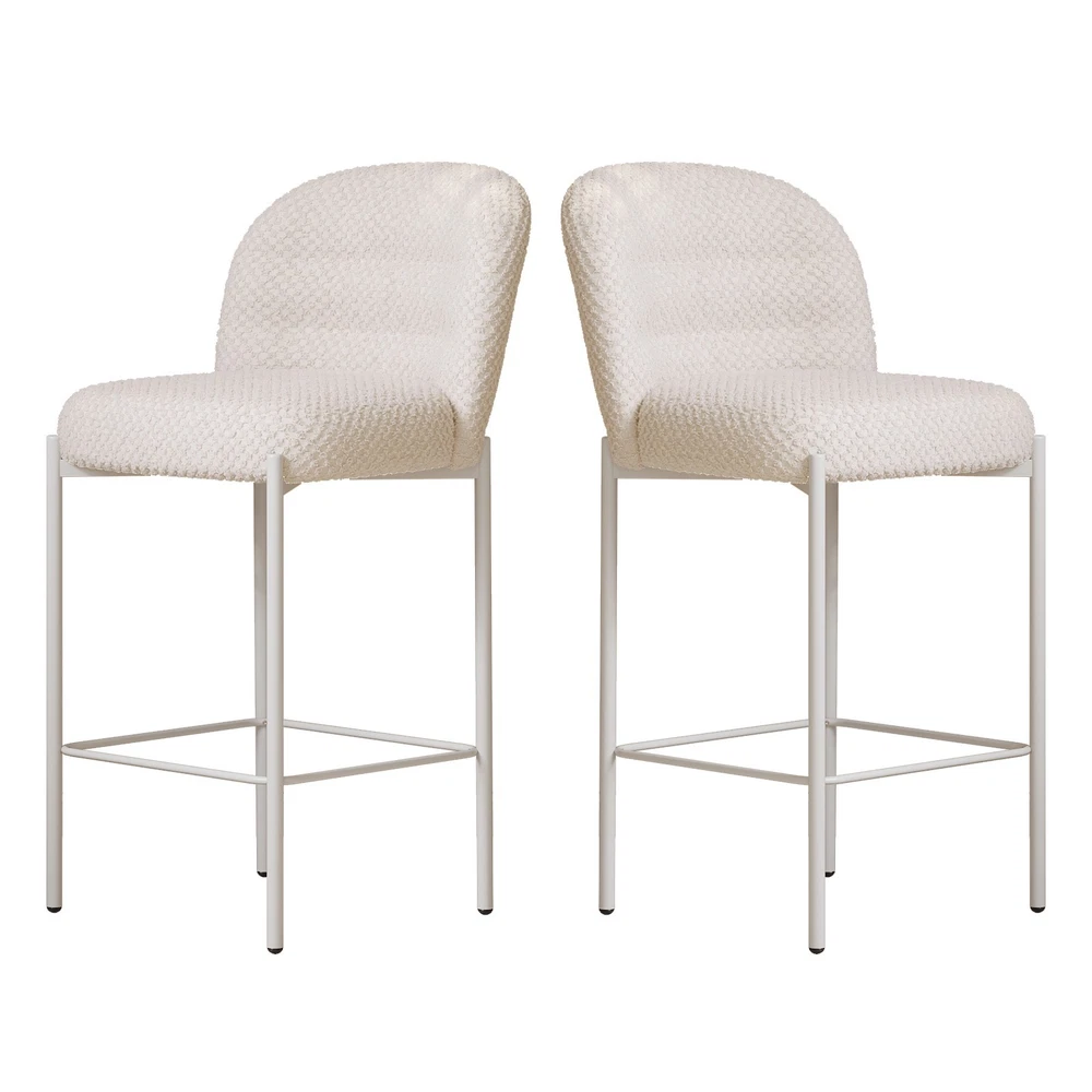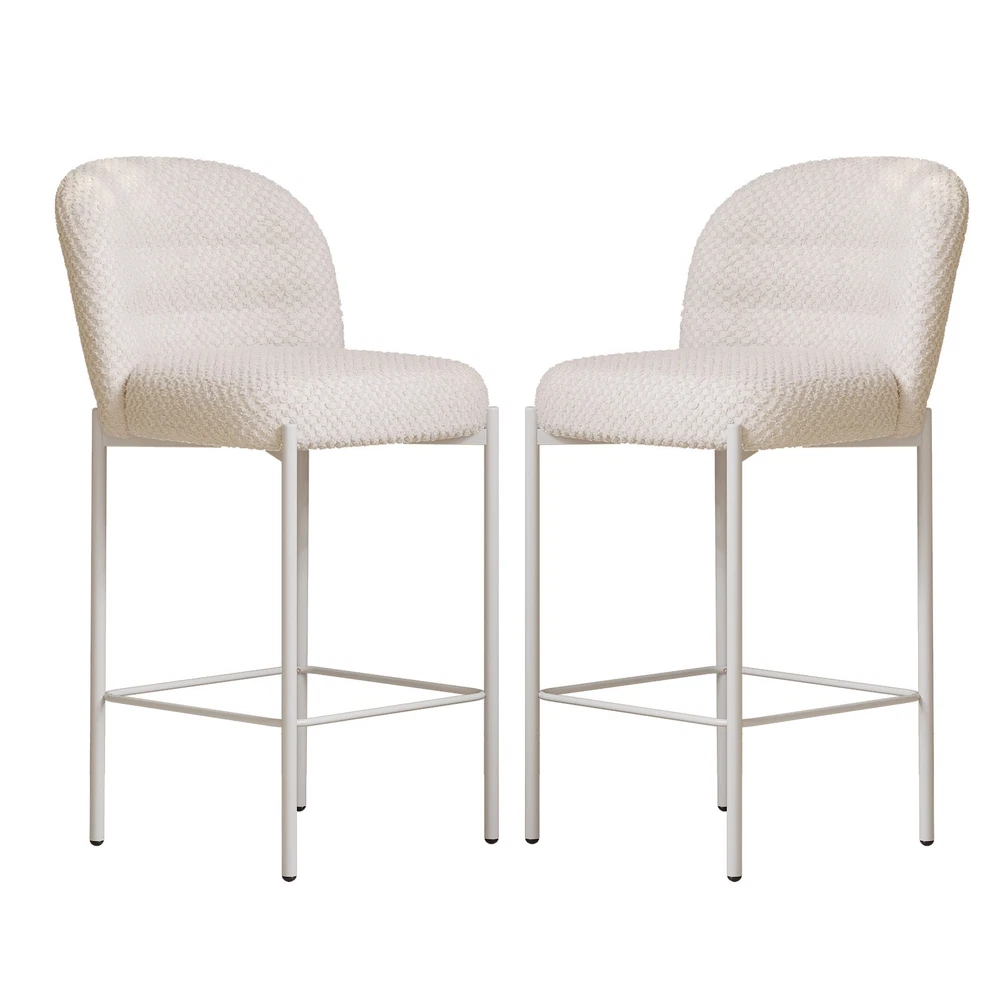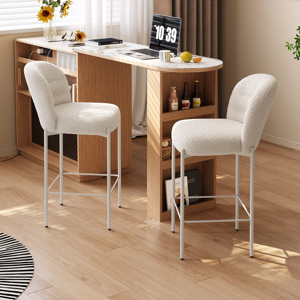 Set of 2 Bar Stools, 36.41" Counter Height Bar Chairs, Beige Upholstered Barstools for Dining Room, Kitchen, Island Features: 【Balanced Comfort for Daily Use】: These bar stools are designed to be comfortably firm—neither too hard nor too soft. The seat features high-resilience foam padding that provides excellent support without losing its shape over time, making it ideal for extended sitting. 【Soft, Skin-Friendly Fabric Upholstery】: The seats are upholstered in a beige, breathable fabric that feels soft to the touch and gentle on the skin. The fabric is also wear-resistant and easy to maintain, offering both comfort and durability for daily use. 【Curved Half-Ring Backrest Design】: The ergonomically curved backrest follows the natural contour of your back while offering just the right amount of support. Its semi-encased design also adds a touch of modern elegance and security while seated. 【Heavy-Duty Metal Frame with 220 lbs Capacity】: Built with a reinforced metal frame, each stool can support up to 220 pounds with ease. The sturdy construction ensures stability, while the sleek frame design contributes to the stool’s contemporary appeal. 【Quick Assembly & Low Maintenance】: All tools and instructions are included, making setup a breeze. The smooth fabric and durable frame require minimal upkeep—perfect for busy kitchens, bars, and family environments. What you will get: Set of 2 Bar Stools Assemble Instruction Accessories required for assembly