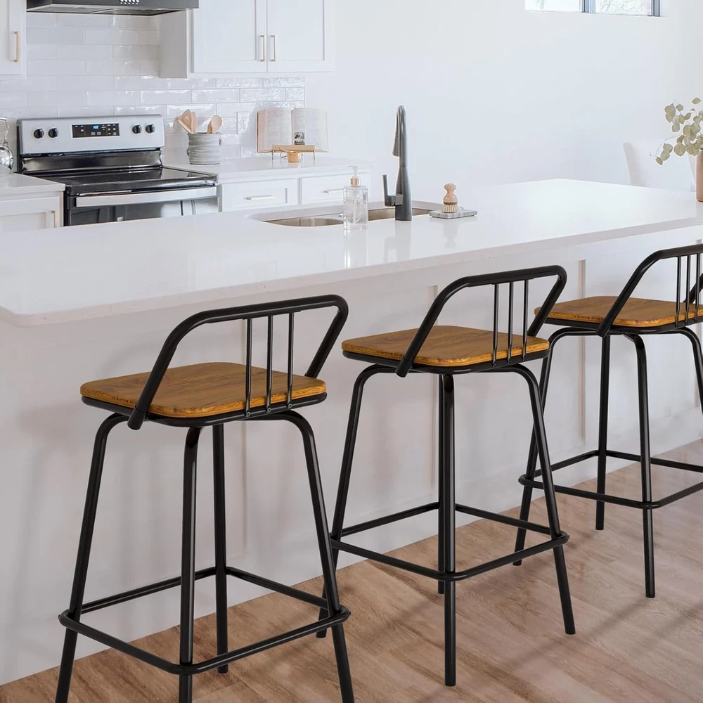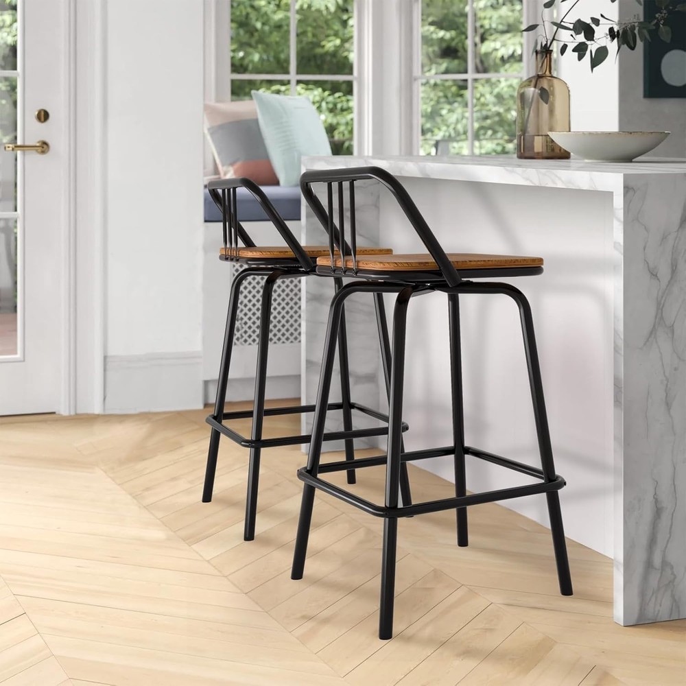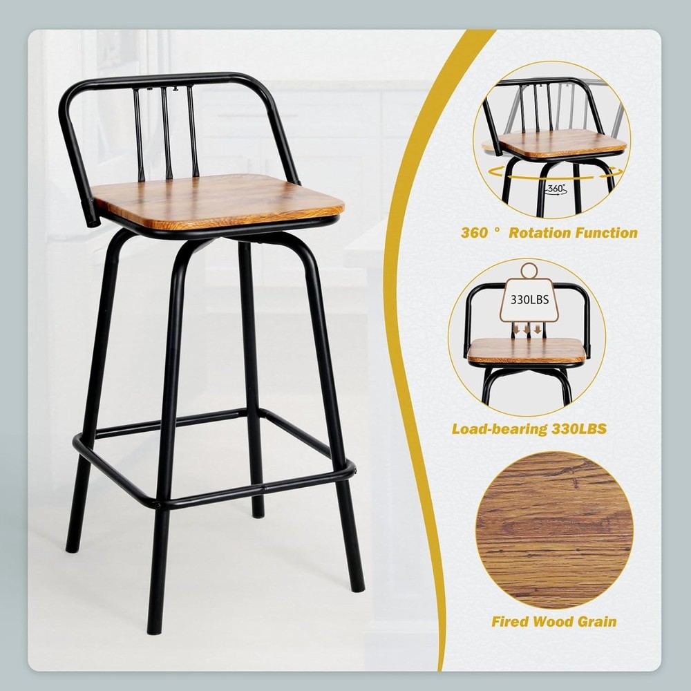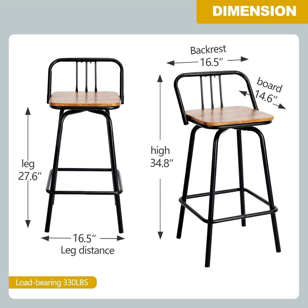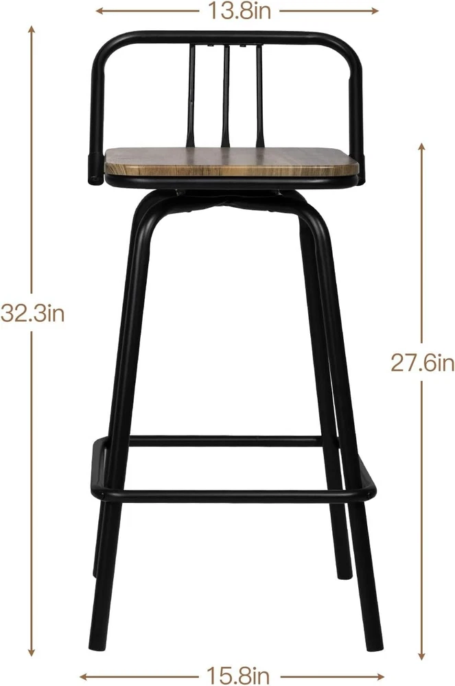 About this item ღ【Heavy Duty Stools】27.8 Pounds High Quality Stools for Home Deocration ღ【INDUSTRIAL STYLE DESIGN】 2 counter height metal retro barstools can be matched with different styles of furniture, farmhouses, bars, pubs, gardens, terraces, cafes, kitchens, ღ【360°SWIVEL FEATURES】 This kitchen stools made of strong metal steel frame and a sturdy circular chrome steel base with ergonomic square footrest lean back on the slightly slanted backrest is convenient for you to chat with your companions at a relaxing atmosphere. ღ【EASY TO CLEAN】 Swivel high stool, wateღ【LOAD CAPACITY】Load capacity 330-pound maximum weight capacity; Seating Area Dimension: 13.8"" X 13.8""; Chair Dimension: 13.8"" W x 15.8"" D x 32.3""H; Suitable for most people.rproof and easy to clean, a piece of wipes is enough for the daily barstool care. ღ【EASY TO ASSEMBLE&AFTER-SALES】 All parts and manual are included in the package, only15-20 minutes to assemble them. Kitchen Island Home Bar Dininig Room