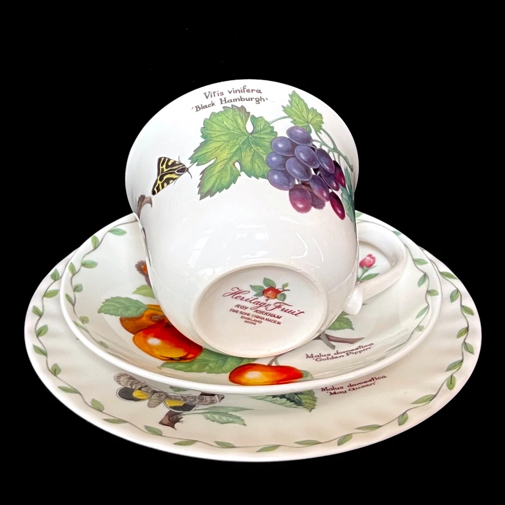 Add a touch of elegance to your morning routine with this set of 2 Large Breakfast Cup, Saucer & Dessert Plate. Made of fine bone china and designed by Roy Kirkham, these cups feature a beautiful floral pattern from "Heritage Fruit" collection. The cups are suitable for both hot and cold beverages and come in a set of 2. These original cups were manufactured in the United Kingdom in 2002 are perfect for collectors or for daily use. Each cup has a unique multicolor design and is made of high-quality materials. Start your day off right with these beautiful cups that are sure to impress. These 2 cups are part of a huge collection of Roy Kirkham fine bone china items including mugs, jumbo breakfast cups with saucers, footed cups with saucers, salad plates and more. _______________________________________________ Price of the item does not include shipping fees. Buyer is responsible for all shipping costs. Please review the listing photos and description carefully. Due to lighting, actual colors may vary slightly from pictures. Items are always carefully and securely packed in a box. The description of items is as accurate as possible. However, if there is a problem with the item you receive, please contact me prior to leaving your feedback and I will be happy to resolve the issue to our mutual satisfaction.