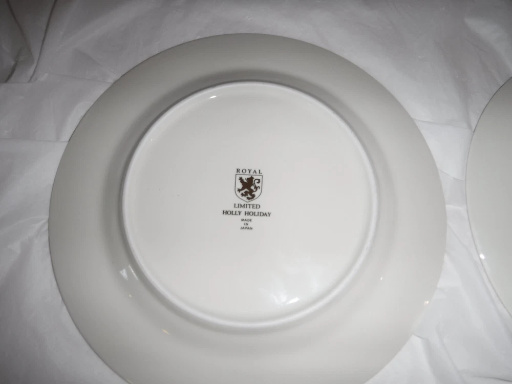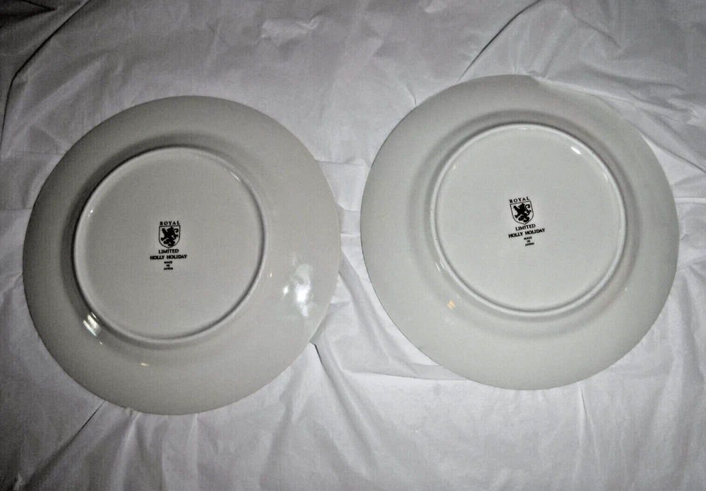 Great preowned condition..NO chips or cracks Calculated Shipping so you never have to pay more for shipping! Set of 2 Royal Limited Japan Holly Holiday Christmas Accent Salad Plates 7 1/2" diameter Holly & Berries Please refer to all photos as they are part of the description. Any questions message me before you purchase. Thanks and have great d