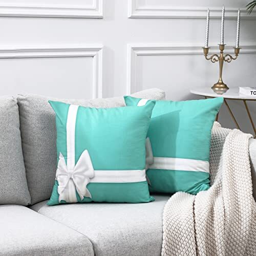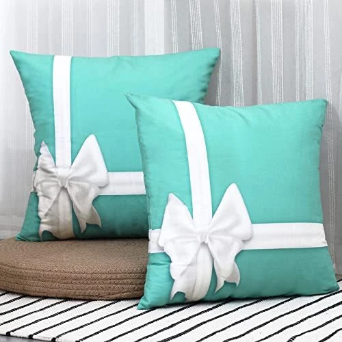 Return Policy Fast Delivery Trusted seller Set of 2 White Bow Silk Ribbons Elegant Satin Bow Turquoise Blue Gift with Space Blue Square Decorative Pillow Case 18 x 18 Inch Zippered Pillow Cover for Bedroom Living Room 2 Sides Print Product Description 50% Cotton 50% Polyester Package: decorative throw pillow cover only, inserts are not included Details: Two sides Printed Couch pillow covers Size: 18 x 18 inches. Please allow 1-2cm deviation ,as they are handmade Zipper: Invisible zipper, with a zippered opening on the side Material: Green environmental protection printing and dyeing process,comfortable and soft Shipping Returns Payment Shipping Shipping is FREE to all addresses other than APO/PO boxes in the lower 48 states. All our stock ships from US-based warehouses. Shipped via USPS or UPS (depending on location and package weight) Unless stated otherwise, all orders will ship within 24-72 hours of your payment being processed. Check our feedback to see the great reviews of FAST shipping we offer. Returns Seller does not accept returns Payment We currently accept payment via eBay managed payments only. Once payment is cleared, we will dispatch your shipment within 1-3 business days. Please refer to the "Shipping" tab for more information regarding shipping speed to your destination.