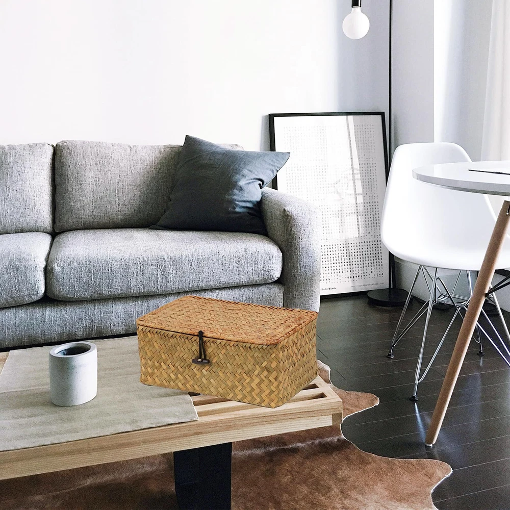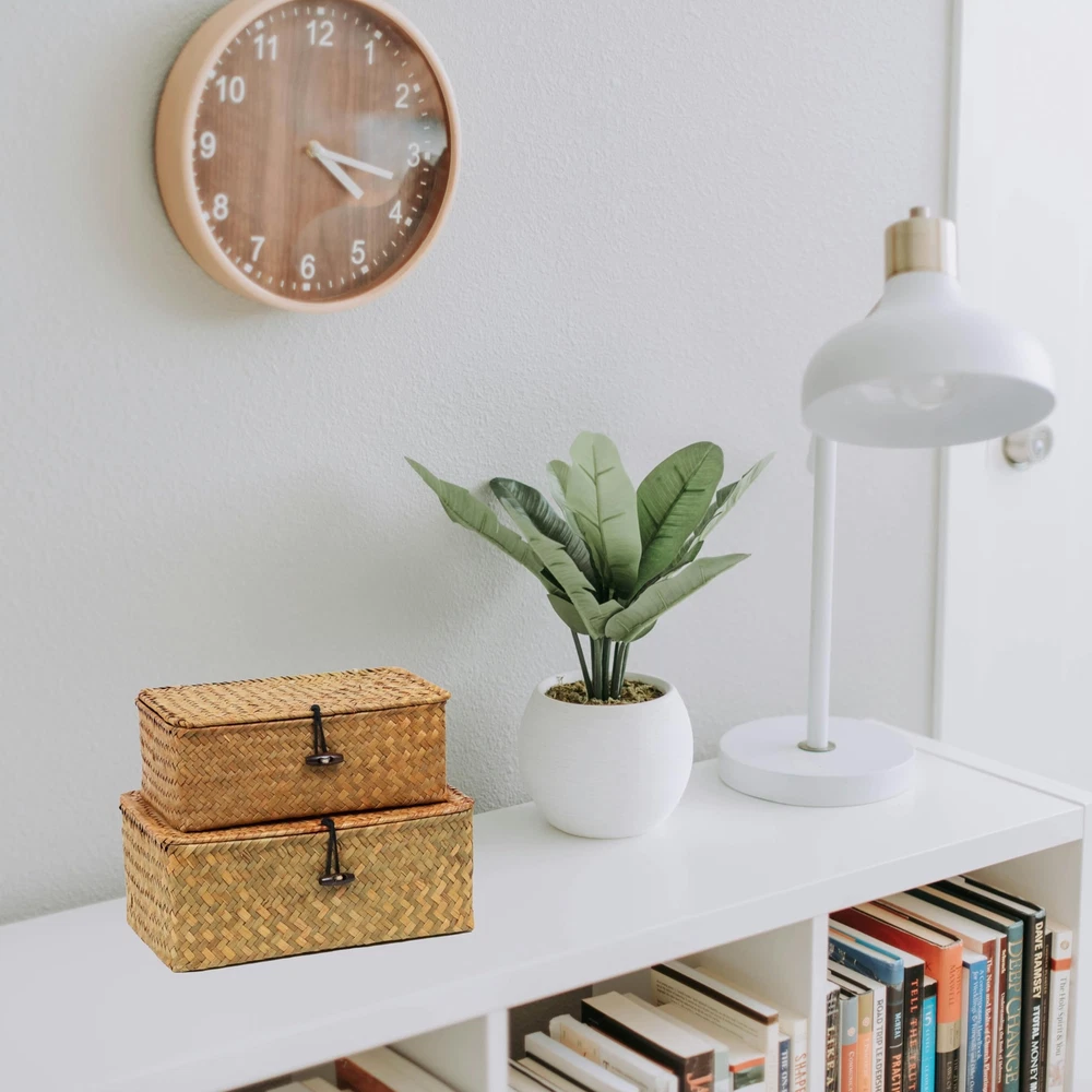 【Set of 2 Basket Set】Small 10.23"L x 6.3"W x 4.13"H, 1 Pack; X-Small 9.05"L x 5.11"W x 3.34"H. Due to the handmade nature, the dimensions may vary within 1/4 inch. Woven Baskets can be stacked when not in use, saving space. 【Natural Seagrass】Our seagrass storage baskets are hand-woven with high-quality natural seagrass and metal frame inside, making them sturdy and functional as well as beautiful. The unique button design secures the lid to the box for added security and aesthetics. 【Versatile Storage Basket with Lid】Ideal for the storage of snacks, fruit, remote control, towels, toilet paper, toiletries, socks, underwear, stationery, accessories, chargers, data cables, toys, and other household items. 【Keep Home Neat】Perfect for the pantry, bathroom, kitchen, bathroom, living room, bedroom, nursery, dormitory, and office. A basket with a lid can make your closet and room look neater. 【Fantastic Gift】Decorative box are hand-crafted and can be given as standalone gifts to friends, family, and lovers; You can also put the gifts in the seagrass basket as an ideal housewarming or birthday gift!
