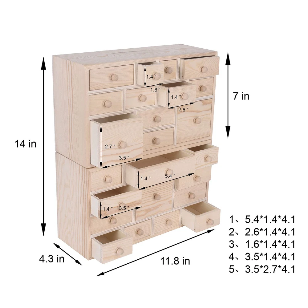 DIY ADVENT CALENDAR - Made of sustainable pine wood,this unfinished wooden box can be a DIY project and customized or personalised. Your child can make two styles of countdown calendars to add more Christmas decorations to the family. SET OF 2 - DIY ADVENT CALENDAR - From the countdown to Christmas on December 1, you can put small candy, toys and even special information into the drawer, so that your children can feel the magic of Christmas every day. UNIQUE DESIGN - This wooden box has two parts. Each box has 12 drawers. The size of each box is: 11.8 * 7 * 4.3in,5 drawers of different sizes,designed to provide a wide selection of gifts such as toys, candy, essential oils, cosmetics and jewelry. MULTI-USE FOR ALL SPACE - This wooden box can be well placed on the desk, bedside table, or in the kitchen of the school, office or dormitory.This wood tissue can be well placed on the desk, bedside table, or in the kitchen of the school, office or dormitory. This storage box is a perfect solution for storing all parts. PERFECT GIFT - The countdown Christmas calendar drawer is empty, so you can reuse it, add the gifts you want, or customize it for each family member. It is the best gift for girls, boys, lovers, grandparents, pets, teachers or classrooms.
