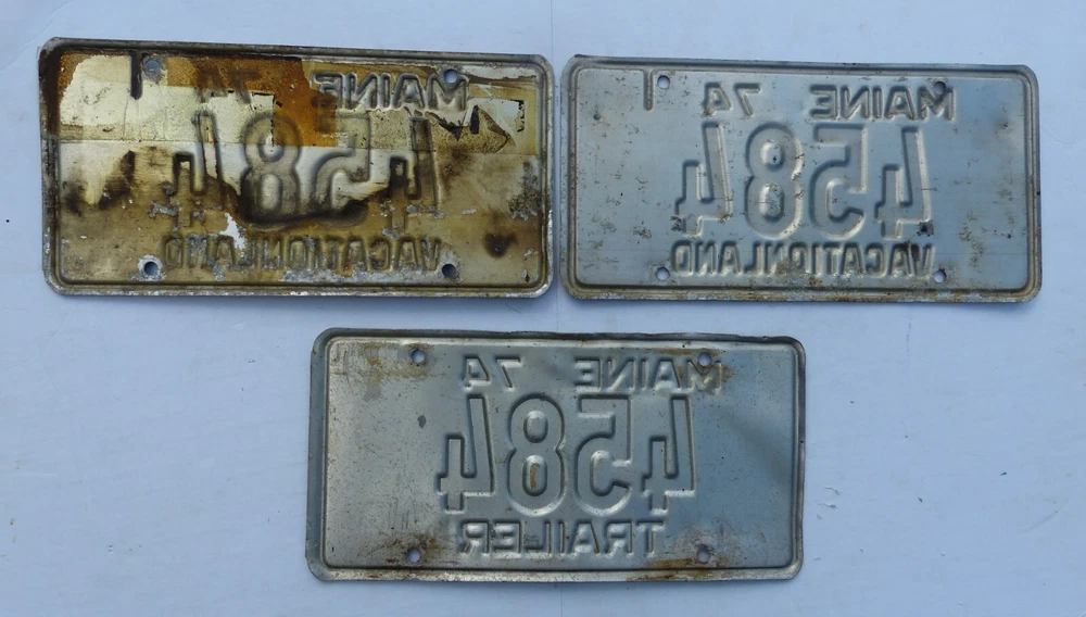 Measures approximately 6" X 12". All plates have multiple year stickers in the 1980's. Heavily used DAMAGED condition with heavily discolored reflectorized material, cracked and "bubbled" reflectorized material, scuffs, scrapes, dents and other signs of use. Does not lay flat. Great opportunity to add to your license plate collection, birth year run, 50 State license plate set or display with your vintage vehicle, rat rod, bar, restaurant or "Man Cave". All plates are over 3 years old and comply with all EBAY requirements. Add $9.00 shipping to US addresses. SHIPPING SPECIAL: I can usually ship up to 8 plates from the same day auction for $9.00. Please wait for me to send a combined invoice in order to take advantage of this shipping special. Sorry, but I cannot ship this item to Canada or other countries. The item in the photos is the one you will receive. Please look closely at the photos and ask any questions prior to placing a bid or offer as I do not accept returns. Thanks for looking.