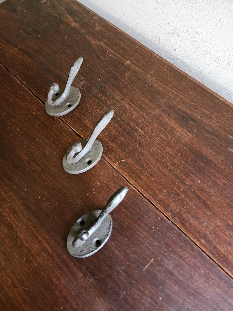Set of 3 Black Wrought Iron Metal Wall Hanging 2 Peg Hooks Coats/Towels/Jewelry