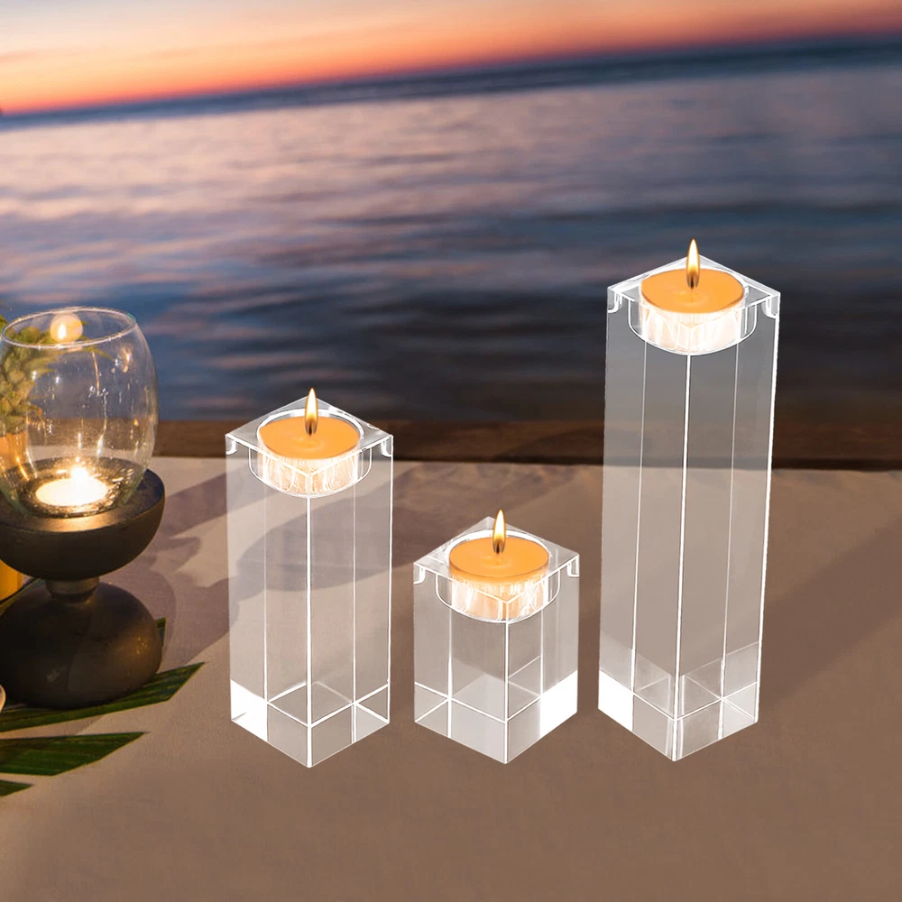 Set of 3 Glass Candle Holder, Crystal Clear Pillar Candle Stand 1.97"Square Description Our crystal candle holder is made of high-quality K9 crystal glass, which is sturdy and durable. You can place candles on top of it to create a cozy atmosphere for family gatherings or romantic candlelight dinners. With its generous appearance, it can easily blend into various occasions. In short, it can bring warmth to your living space and showcase your extraordinary taste in life. Key Features Sturdy and Durable: Made of K9 crystal glass, this product is not easily corroded, worn, or deformed, ensuring your long-term use. Atmosphere Maker: You can place candles(not included) on this product, and their beautiful light can create a warm and romantic atmosphere for your date or gathering. Generous Appearance: The clear color tone, columnar shape, and smooth lines give this product a generous appearance, making it easy to integrate into various interior decoration styles. Easy to Move: Its lightweight(4.41 lbs) allows you to move this product wherever you need it without spending too much time and effort. Ready to Use: This product is shaped in one piece, so you can use it directly without assembly. Simple Cleaning: It has a smooth surface and a simple structure, so you only need to wipe the dust with a towel after use. Ideal Gift: This practical product can be used as an ideal housewarming, birthday, and holiday gift for parents, friends, and loved ones. Customer Service: We stand behind all our guests and look forward to assisting you with your purchase. It is our pleasure to answer your confusion and questions. The end of the story between us is definitely not "we sell and you buy". Details Smooth Edge: The rounded and smooth edges not only add to the aesthetics of the product but also improve the safety of use. 3Pcs: 3 different sizes(1.97*1.97*7.87inches, 1.97*1.97*5.51inches, 1.97*1.97*3.15inches ) can meet your different usage needs and adapt to various occasions. Application It is suitable for tealights with a diameter of below 1.57 inches. It is ideal for weddings, Christmas, parties, birthdays, anniversaries, dating, candlelight dinners, fireplaces, dining & coffee tables, kitchens, living rooms, bathrooms, SPAs, hotels, and other occasions. Specifications Color: Clear Shape: Square Style: European Material: K9 Crystal Glass Assembly Required: No Mount Type: Tabletop Number of Items: 3 Applicable Tealight Diameter: Below 4cm/1.57in Product Size: 5*5*20cm/1.97*1.97*7.87in, 5*5*14cm/1.97*1.97*5.51in, 5*5*8cm/1.97*1.97*3.15in Package Size: 26*24*7cm/10.24*9.45*2.76in Gross Weight: 2.3kg/5.07lbs Net Weight: 2kg/4.41lbs Package Included 3* Crystal Candle Holders Notes Please note that this product does not include candles. Please double-check the size you need before ordering. Please allow the slight color difference caused by the shooting light and 1-3cm error due to manual measurement, and make sure you do not mind before you order. Payment Delivery details Terms of sales About us Contact us Payment We accept ebay payment 。 Fees such as import duties, taxes are not included in the item price or shipping costs. These charges are the buyer's responsibility. Delivery details Shipping: 2-9 working days to: USA Terms of sales We maintain high standards of excellence and strive for hundred percent customer satisfaction. Feedback is very important to us. We hope that you contact us immediately before you give neutral or negative feedback, so that we can address your concerns. It is impossible to address issues if we do not know about them! About us Your satis faction is our ultimate goal. We work hard to earn your trust and future business. Our certified technicians have tested each item before shipping. The unit comes with 1 year limited warranty on all manufacturing defects. a) If you receive a defective item, you may return it or ask for a discount. Please contact us within 14 days after you receive the package. b) What you returned must be intact and in its original packaging as re? u. Customer is responsible for shipping costs of the returned item. c) We will cover the cost of shipping back t with the shipping rate indicated in the registration page. We will send you a new unit or refund the full payment you paid. Thank you. Contact us Business Hour Business Hour: Monday To Friday: 8:30 AM to 5:00 PM (Beijing China time) Due to time zones, our reply to your questions may not be immediately. But within above working time, we will reply your email within 24 hours. If it's non-workdays, please kindly be patient and wait till Monday. Please contact us with ebay message. Please feel free to contact us if you have any questions. Monday To Friday: 8:30 AM to 5:00 PM (Beijing China time) Due to time zones, our reply to your questions may not be immediately. But within above working time, we will reply your email within 24 hours. If it's non-workdays, please kindly be patient and wait till Monday. Please contact us with ebay message. Please feel free to contact us if you have any questions.