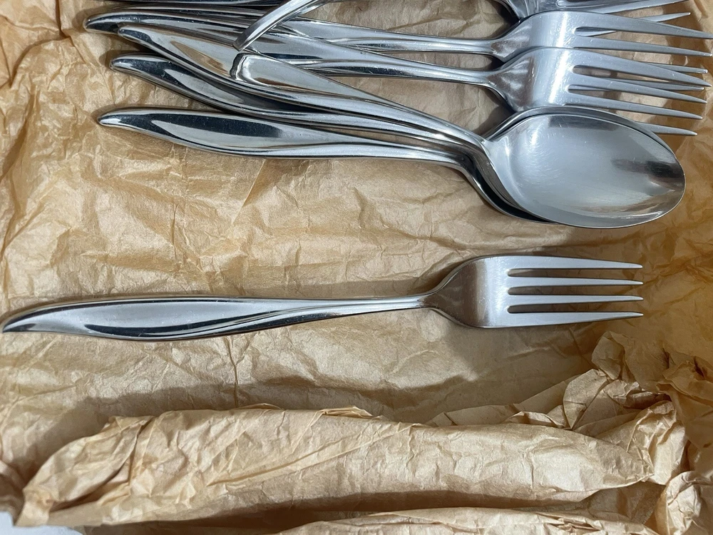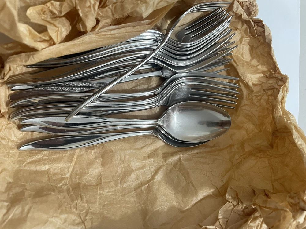 Enhance your dining experience with this stylish set of 35 Reed & Barton EVENING MOOD Stainless Flatware. Crafted from high-quality stainless steel, this set includes 3 iced tea spoons and 1 sugar spoon, making it perfect for serving guests. The solid handle pattern and glossy finish add a touch of elegance to any table setting. Ideal for adults and suitable for use in any kitchen or dining room, this set of flatware is perfect for everyday use or special occasions. It comes in a beautiful silver color and with the manufacturer color being silver, it is sure to match with any dinnerware. Upgrade your cutlery collection with this stunning set and enjoy your meals in style.