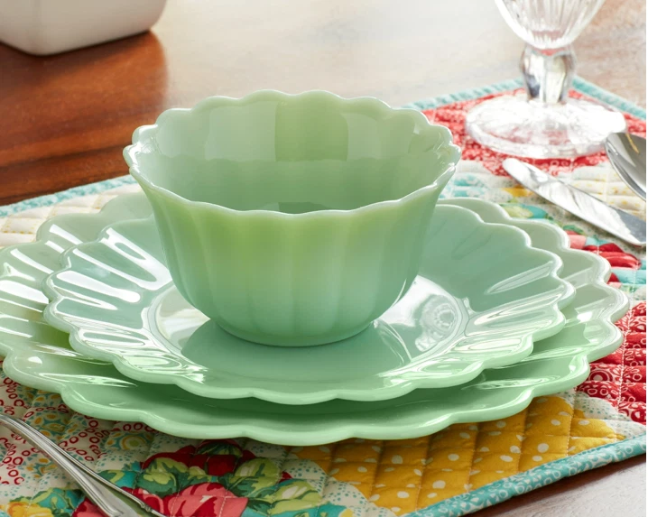 The Pioneer Woman Timeless Beauty 3-Piece Dinnerware Set β Retro Jade Green πΏβ¨ Bring retro charm to your kitchen with The Pioneer Woman Timeless Beauty 3-Piece Dinnerware Set . Inspired by the beloved jadeite dinnerware from the '40s, '50s, and '60s, this set is the perfect blend of vintage style and modern convenience. Features: β Jade-green milk glass β evokes timeless vintage charm β Scalloped-edge design β adds a touch of elegance to every meal β Includes: 10.5" dinner plate 8.5" dessert plate 5.3" bowl β Dishwasher safe β easy cleaning for everyday use β Not microwave safe β preserve the beauty of the set Add this classic set to your kitchen and entertain family and friends with style, from Reeβs frontier to yours! π½π