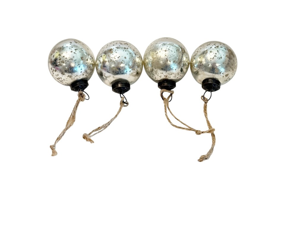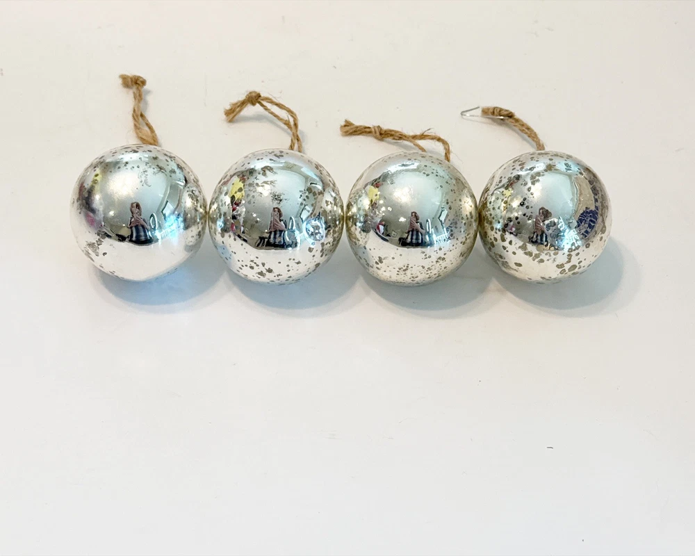 Add a touch of vintage charm to your Christmas tree with this set of 4 glass mercury ball ornaments. These silver crackled Kugel style ornaments are perfect for any holiday occasion and will add a festive touch to your home decor. Hang them on your tree or display them year-round to show off your seasonal theme. The set includes four ornaments and features a unique pattern that will make them stand out among other ornaments. Get ready to impress your guests with these beautiful ornaments that will bring a touch of elegance to your home. Smoke free home Please visit my store at https://www.ebay.com/str/theuniqueredhead . Thank you for your consideration. Please message me if you have any questions. I do combined shipping on my items in the store.