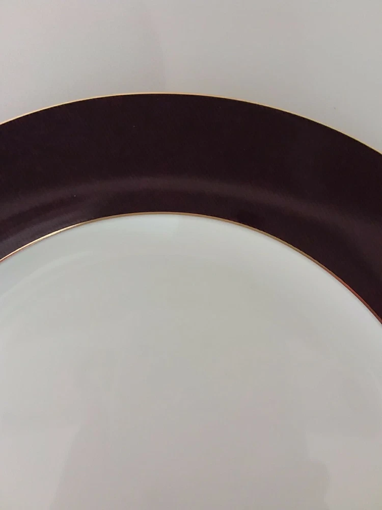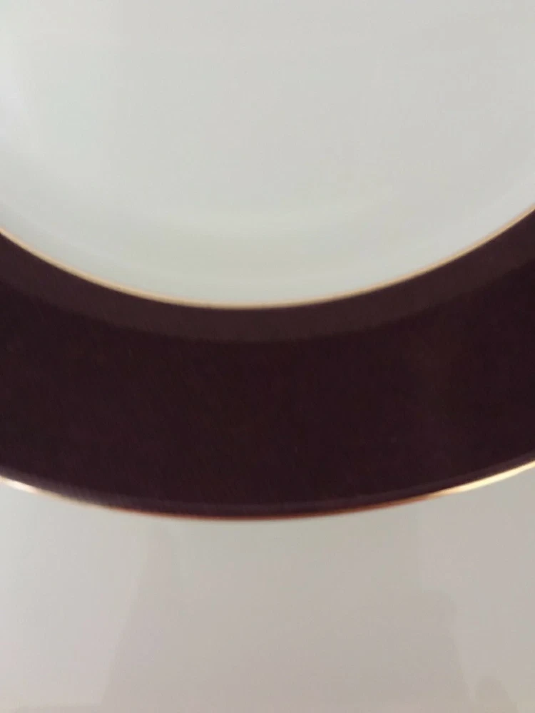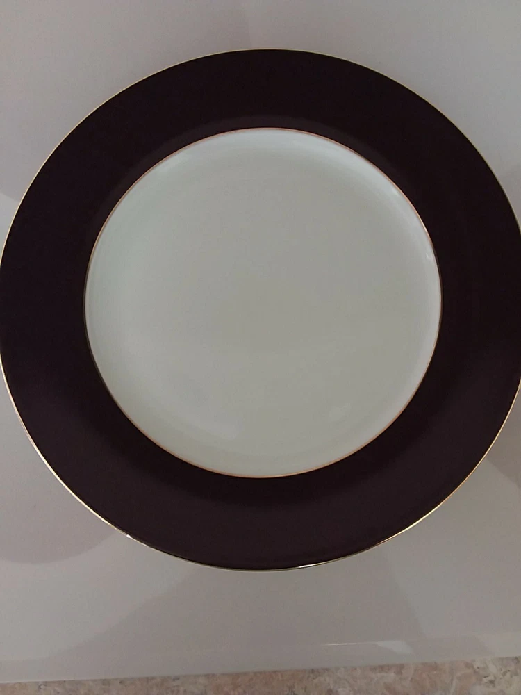 Set of 4 Graces Teaware 10 1/2" Dinner Plates, Amethyst and Gold Border Hand Wash Only Beautiful Amethyst (Deep Purple) border trimmed in Gold I also have the matching Peacock Salad Plates, item # 315571215429 A beautiful addition to your table setting I will do combined shipping if you buy any other of my other items. The bright white spots in the photos are just reflections from the lights Comes from a clean, smoke free, pet free home Buy with Confidence - see my feedback Check out my eBay store for more amazing items