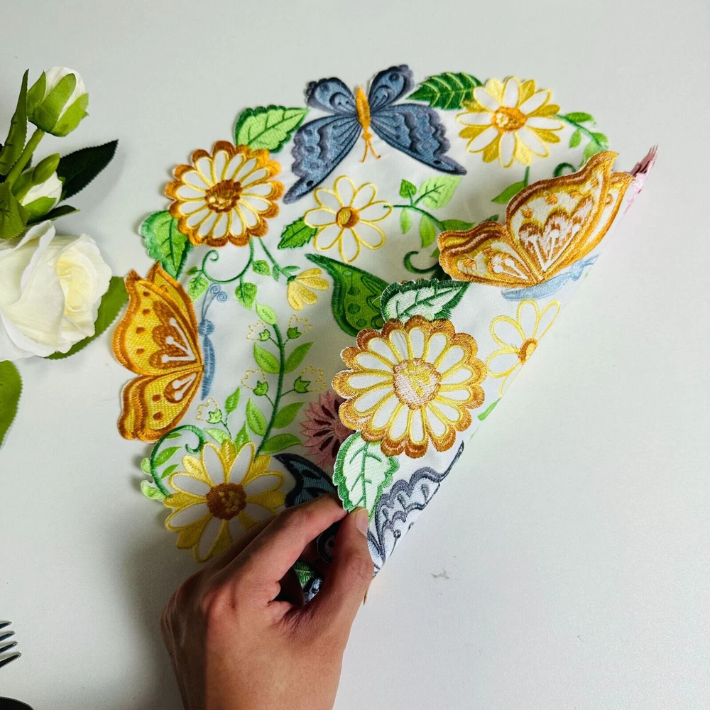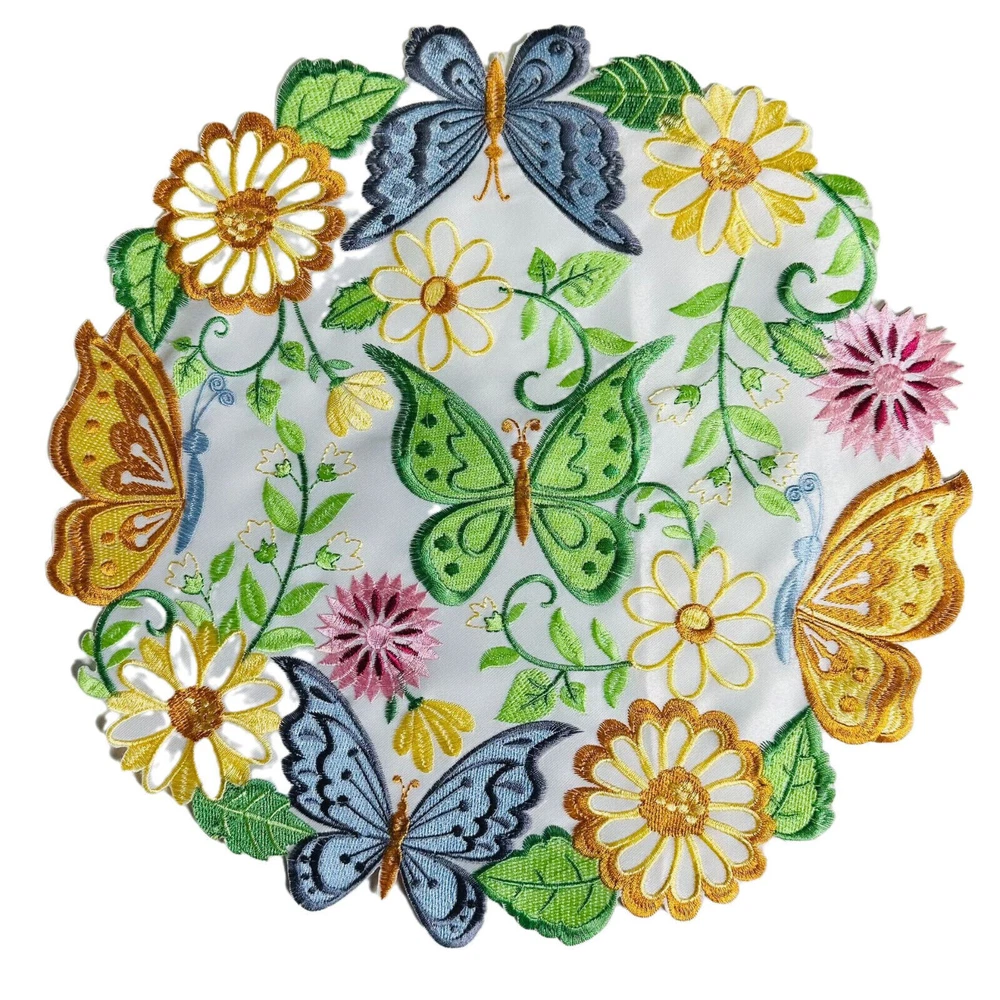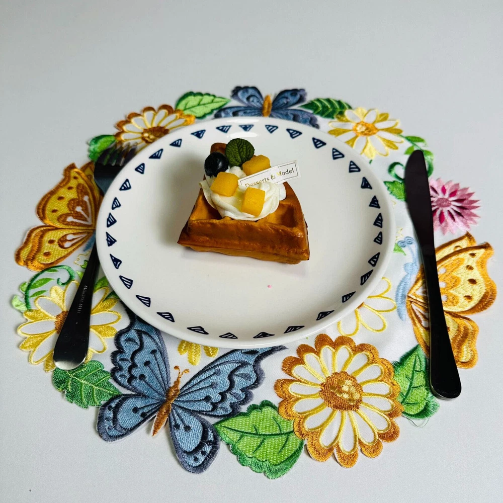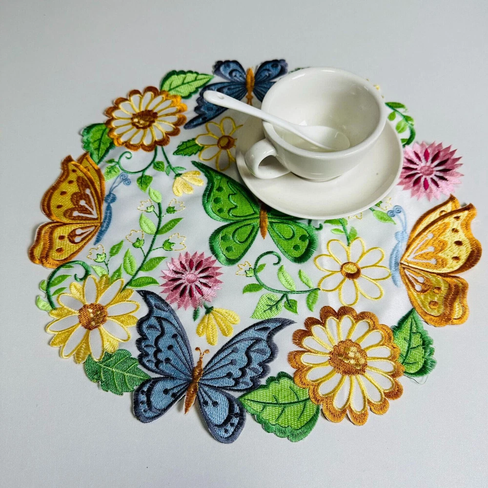 Specifications: Material: Polyester Shape: Round Size ( Diameter): 35cm/14" Package Includes: 4 x Placemats High Quality: Good quality and durable structure giving a long lasting use and saves your furniture. Design: Delicate Stitching and bright applique floral butterfly cutwork embroidered Easter spring design. Wide Applications: Perfect for home kitchen dining room table top decorations. Good for everyday use,garden,parties, Easter,Thanksgiving day,holidays etc. Good for everyday use,garden,parties, Easter,Thanksgiving day,holidays etc. Washing Tips: Machine or hand washed, slightly iron. Notice: 1.Please allow 0-1 inch error due to manual measurement.Thanks for your understanding. 2.Monitors are not calibrated same, item color displayed in photos may be showing slightly different from real object.