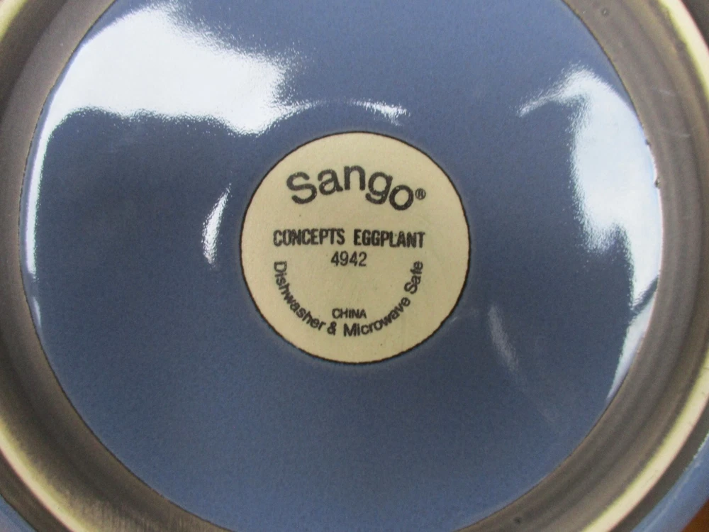 Type:Salad PlateManufacturer Warranty:naPlate Diameter:8 1/2"Item Height:naPattern:Concepts EggplantProduction Technique:PotteryAntique:NoNumber of Items in Set:Four-PieceShape:RoundVintage:NoSet Includes:Salad PlateOccasion:All OccasionsTime Period Manufactured:2010-2019gtin13:Does not applyMaterial:StonewareProduction Style:Art PotteryBackstamp:PrintedProduct Line:sangoBrand:SangoItem Width:naItem Length:naStyle:EmpireItem Weight:naUPC:Does not applyHandmade:NoEra:21st Century (2000-now)Origin:AmericaTheme:eggplantCountry/Region of Manufacture:ChinaCare Instructions:Machine Washable up to 140°FMPN:N/ASeller Notes:“PRE-OWNED. EXCELLENT CONDITION.”Finish:Lead-Free GlazeFeatures:Dishwasher Safe, Microwave SafeOriginal/Licensed Reproduction:OriginalColor:White/Blue