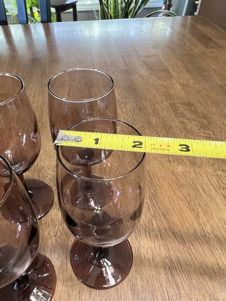 Material:GlassCountry/Region of Manufacture:UnknownVintage:YesUPC:Does not applyStyle:Mid-Century ModernShape:RoundNumber of Items in Set:Four-PieceCare Instructions:Hand Wash OnlyColor:PurpleSeller Notes:“good pre-owned condition - no flaws noticed”gtin13:Does not applyType:Wine GlassProduction Technique:Fused GlassOccasion:All OccasionsOriginal/Licensed Reproduction:Original