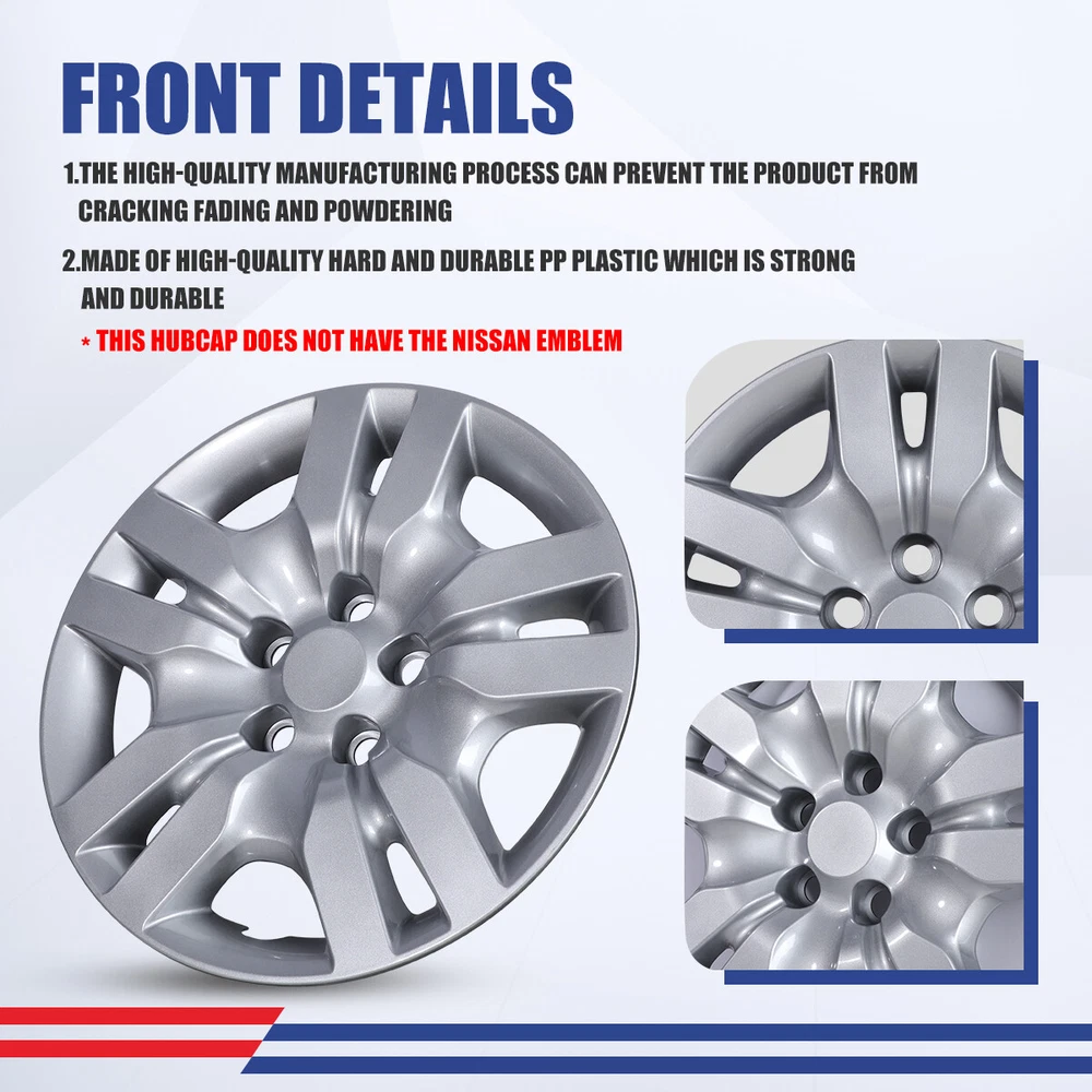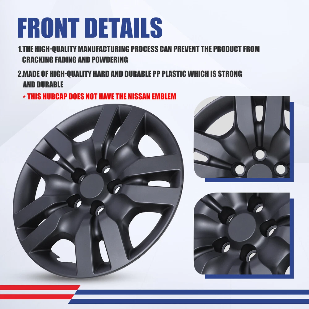 Home Payment Shipping Return Policy About Us Contact Us Feedback Title Other Car Refrigerator Front Bumper Rear Bumper Fender Flares Inner Fenders Side Steps Running Board A-Pillar Light Mount Brackets Headlights For Ford For Dodge For Chevrolet For Toyota For Mitsubishi Taillights For Chevrolet For Toyota For Ford For Jeep For Dodge For Honda For Nissan For Cadillac Fog Lights For Jeep For Dodge For Chrysler For Ford For Toyota For Chevrolet For Nissan For Lexus For GMC For Cadillac For BMW For Mercedes Benz LED Headlights For Ford For Dodge For Chevrolet For Toyota LED Taillights For Toyota For Chevrolet For Ford For Jeep For GMC For Honda For Cadillac LED Fog Lights For Toyota For Ford For Chevrolet For Mercedes Benz Jeep Headlights Tail Lights Fog Lights Refrigerator Bumper Fender Flares Inner Fenders A Pillar Light Mount Brackets Side Step More Chevrolet Headlights Tail Lights Fog Lights Refrigerator Bumper Ford Headlights Tail Lights Fog Lights Refrigerator Bumper Toyota Headlights Tail Lights Fog Lights Refrigerator Bumper Dodge Headlights Tail Lights Fog Lights Refrigerator Bumper GMC Headlights Tail Lights Fog Lights Refrigerator Bumper Wheel Covers Features ✴ PERFECT FIT: This wheel hub cap is specifically designed to perfectly fit for 16-inch wheels, ensuring a seamless match and enhanced aesthetics. It complements the overall design of the vehicle, elevating its visual appeal. ✴ HIGH-QUALITY MATERIAL: Constructed from high-quality materials, this wheel hub cap guarantees durability and longevity. It withstands various road conditions and environmental factors encountered during daily driving, maintaining its pristine condition. ✴ EASY INSTALLATION: Installing this wheel hub cap is a breeze and requires no specialized tools or modifications. It comes with a user-friendly system, allowing for a hassle-free installation process by following the provided instructions. ✴ PROTECTIVE FUNCTION: Besides its aesthetic appeal, this wheel hub cap serves as a protective barrier for the wheels. It prevents scratches and potential damage caused by stones, debris, or other objects, safeguarding the wheel's surface. ✴ AFTER-SALES SERVICE: If There Is a Loss of Product Parts, or Any Parts of The Problem, We Can Provide After-Sales Service, Please Contact Us on The Order Page. Wheel Covers Specification ✴ Type: Hub caps ✴ Number in Pack: 4 ✴ Color: Black Lacquer or Silver Lacquer or Chrome or Matte Black ✴ Material: ABS ✴ Compatible Wheel Diameter: 16 in ✴ Finish: Glossy or Matte ✴ Installation Type: Bolt-On ✴ Model: For 2007-2012 Nissan Altima/2008-2009 Nissan Altima Coupe Wheel Covers Package ✴ 1 Set of 4 Hub caps and 4 retention rings (Color depend on your choice) Payment Delivery details Terms of sales About us Contact us Payment We accept PayPal, credit card , Apple Pay & Google Pay etc. Delivery details All items will be shipped within 1-3 business days after payment received, we will try our best to ship out as soon as we can, hope for your understanding. Please double confirm your address and contact information, which will help the delivery faster and more accurately. Note :buyers who purchase international products need to pay import tariffs!!! Terms of sales Professional installation is highly recommended. Any problem of the item please feel free to contact us first , please D o Not leave negative feedback before that, or simply return it within 60 Days in original condition. We will resolve it for you ASAP. About us Any questions please do not hesitate to contact us directly by eBay message . We will reply you within 24 hours asap, thanks for your understanding. Contact us Should you have any problem or require any further information please feel free to contact us . If you are satisfied with our product and service, please kindly leave us a positive feedback. On Jan 17, 2025 at 22:35:34 PST, seller added the following information: