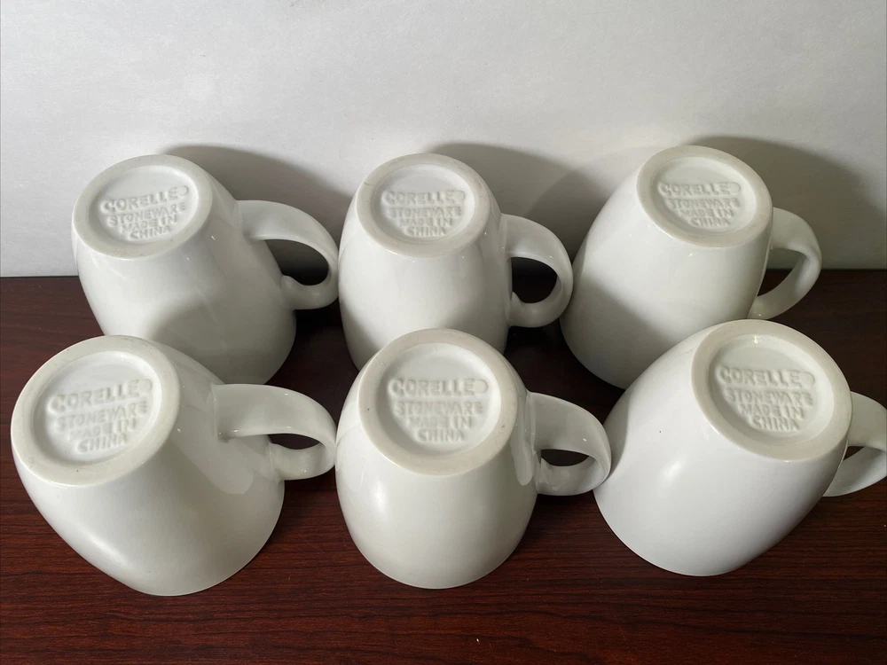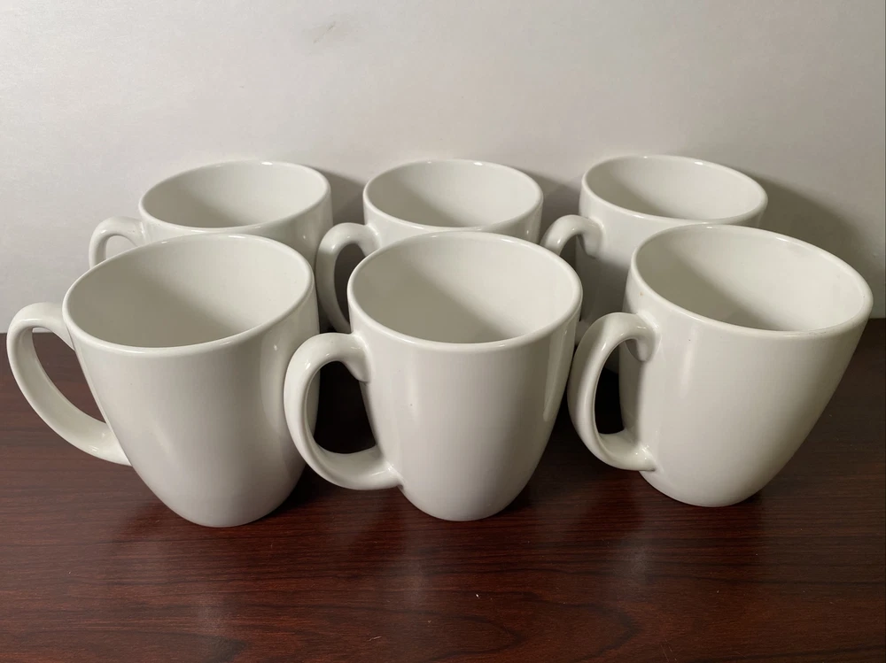 Set of 6 Corning CORELLE STONEWARE Plain White Coffee / Tea Mugs Vintage 11 oz Item is used. No chips or cracks in all but 1 or the cups. The one that is has a extremely small chip and it is shown in the 3rd picture. Cups will be wrapped in bubble wrap and then put into a box. Then that box will be put into the USPS priority mail box with more bubble wrap. No breaking in shipping!!! Shipping see shipping section for price and service Orders are shipped out before 3 business days (If ordering between October 1 to January 31 shipping might have a delivery delay due to influx at the post office.) Unhappy?? We value your time and business. Our goal is always to strive for 100% satisfaction from our customers. So please allow us the opportunity to service you well. If for any reason you are unsatisfied please return for a refund. All items must be in same condition as received in. You must message me with pictures before sending back.