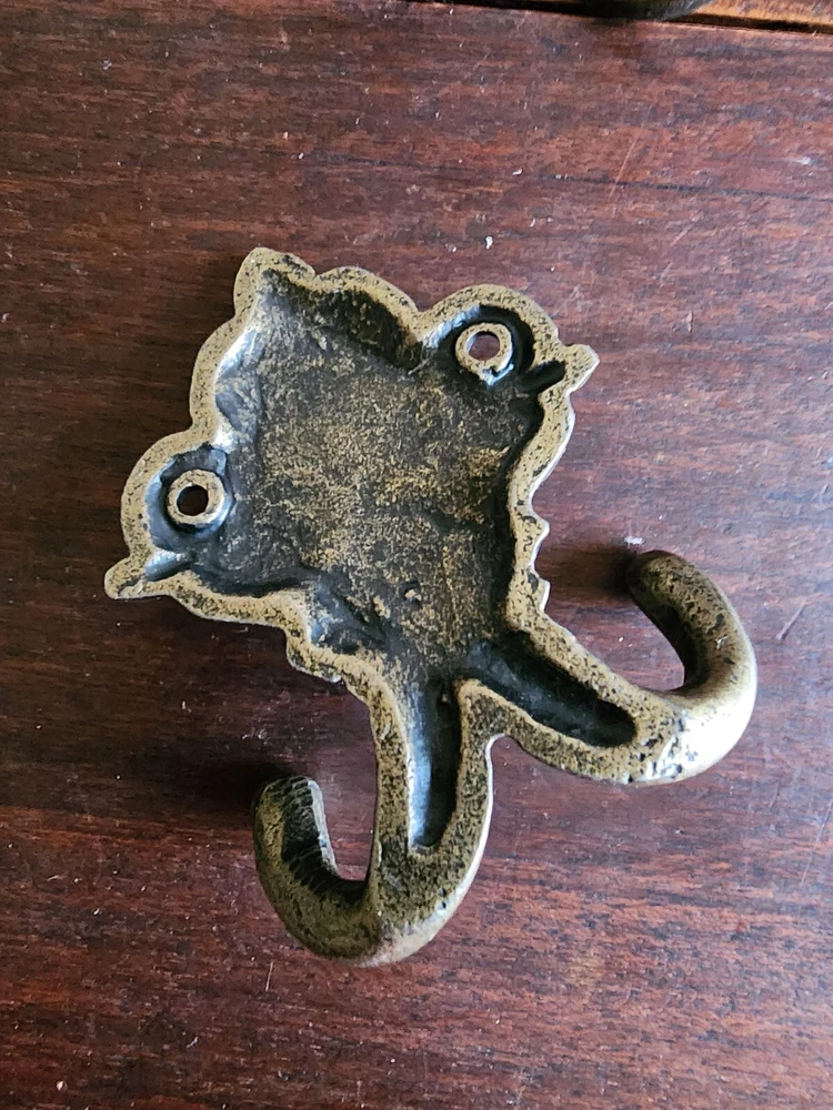 Number of Hooks:6Original/Reproduction:OriginalMaterial:MetalType:Coat HookCare Instructions:Clean with Dry ClothMounting:HangingTheme:FarmhouseItem Length:3.25 inPersonalize:NoItem Width:1.25 inFinish:MatteStyle:ShabbyHook Style:TraditionalNumber in Pack:6Country/Region of Manufacture:UnknownBrand:Hobby LobbyDepartment:Kids, Teens, AdultsFeatures:Heavy DutyColor:GoldItem Height:2,5 inPersonalized:No