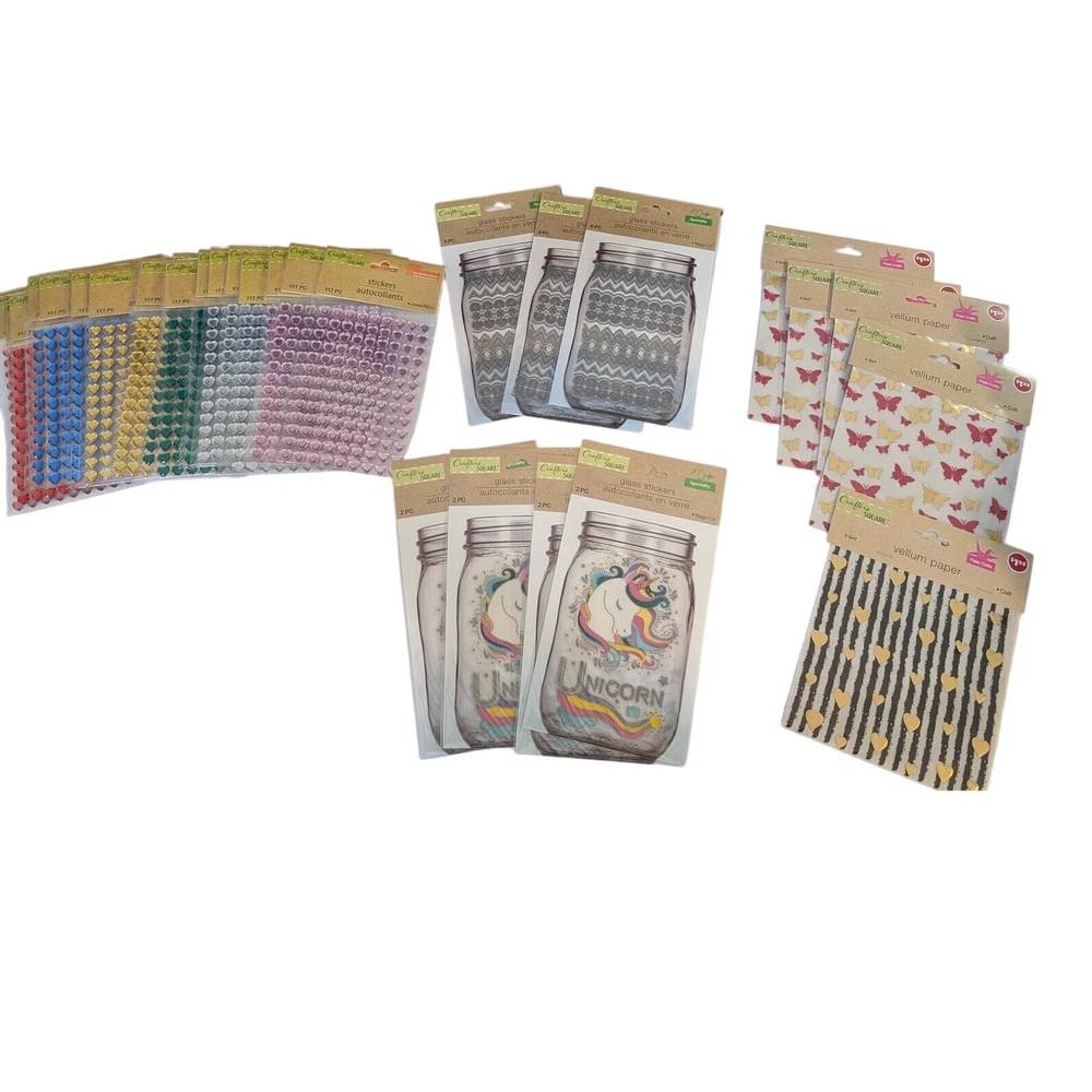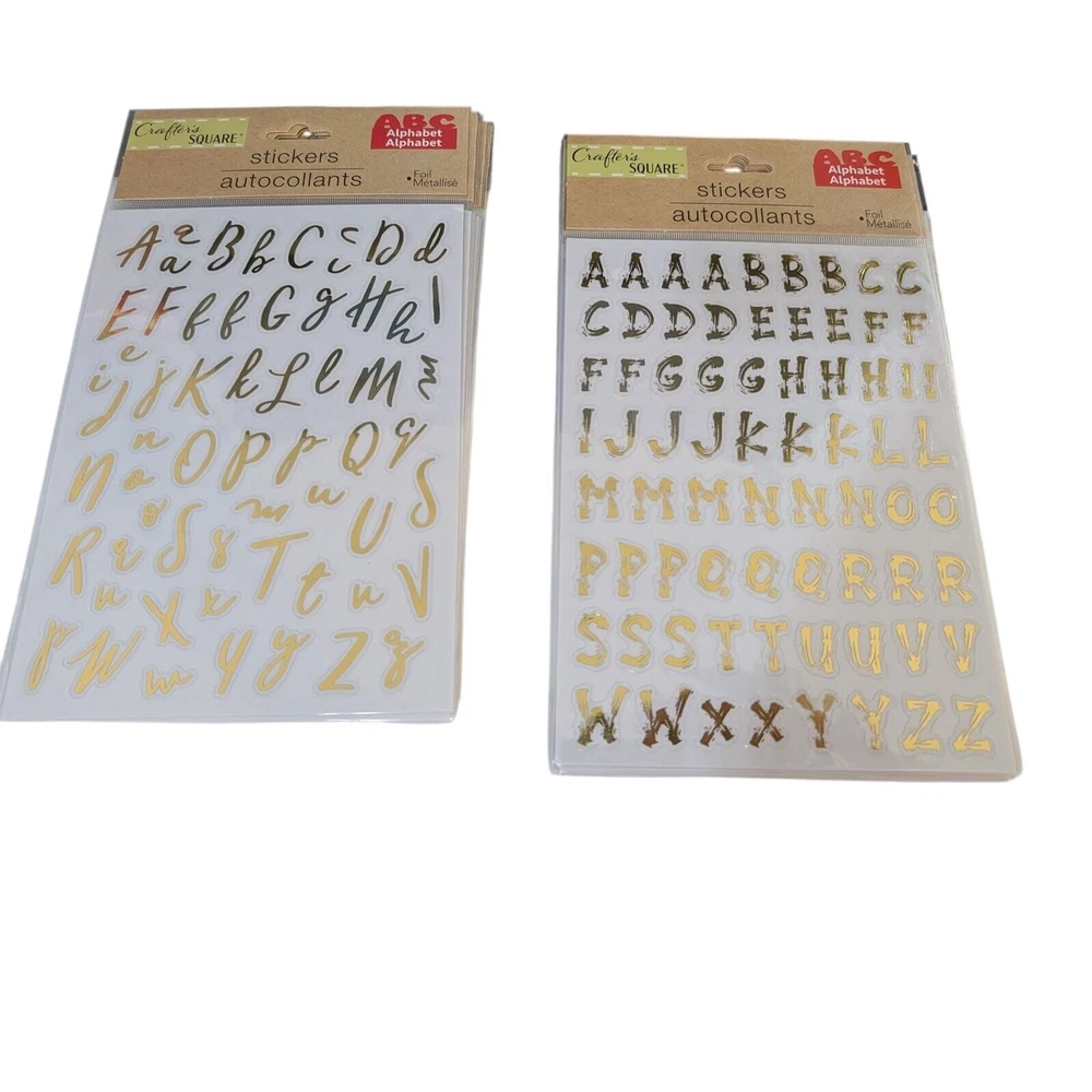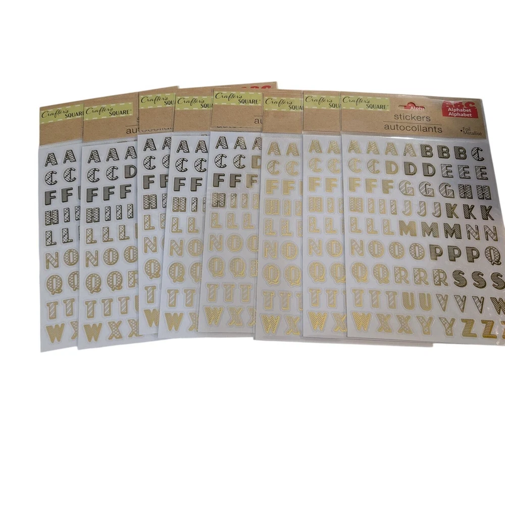 Set of 79 Packs of New Rhinestone Script Alphabet Stickers Set of 79 Packs Crafters Square There is a lot of different styles on the alphabet stickers. (See pics) Over $98.00 ratail for all of them. There is Glass stickers. (See pics) Vellum paper. I am selling all my craft supplies so if you are looking for other things, please let me know. I have alot! If you have any questions about this lot, please let me know as well.